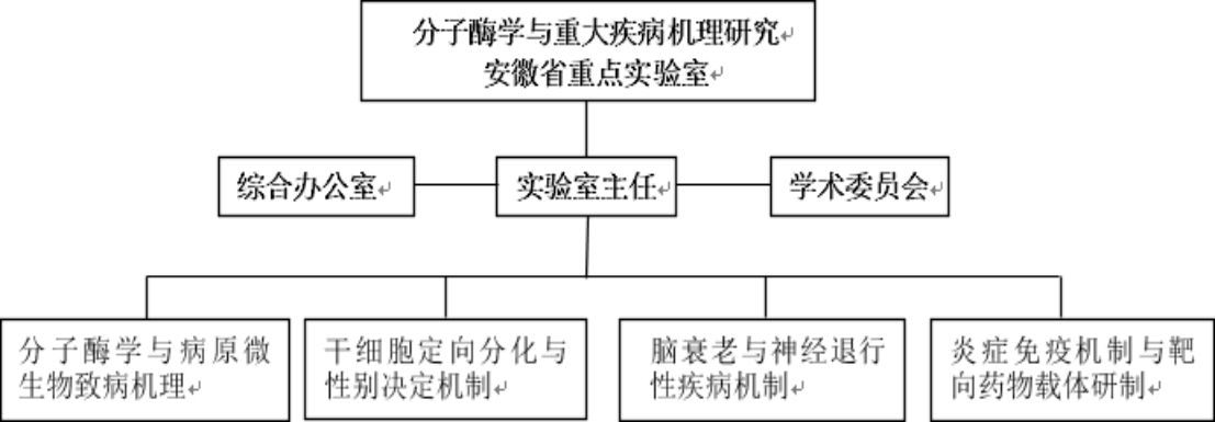 实验室基本定位:大力推动生命科学及医学交叉的专门人才的培养,解析重要临床病原微生物致病分子机制,以及挖掘一些重大疾病检测和诊断靶点并推动靶向药物研发;立足安徽,辐射长三角,在学科建设、人才培养及学术水平提升、大型仪器设备使用等方面与地方高校及医疗机构、生物医药企业加强合作,实现我省生物医药产业转型升级发展。