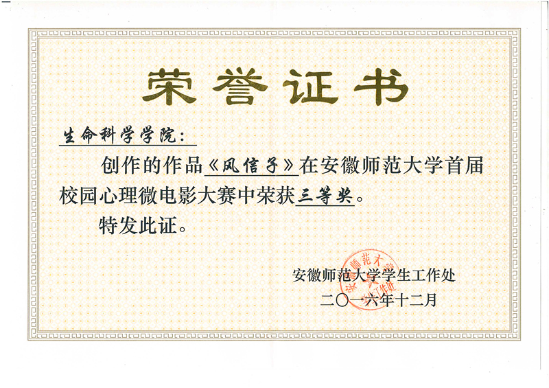 bwin必赢线路检测首届校园心理微电影大赛三等奖
