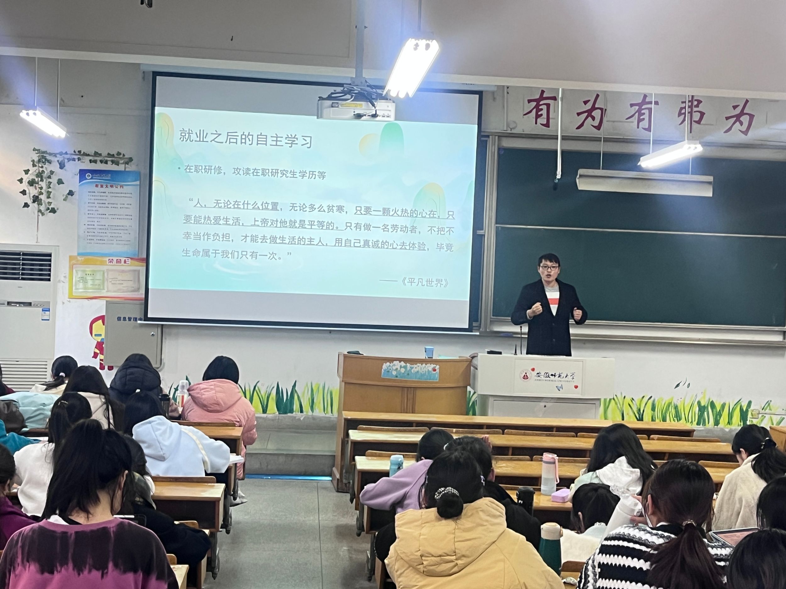 学院辅导员周文娟邀请生物科学(卓越教师班)专业负责人姜斌,开展“扬帆起航,再创辉煌”考研及就业规划指导交流会。11月20日下午15时,交流会于田家炳教学楼8308举行,由周文娟担任主持。21级生物科学专业3班、卓越教师班全体同学参加。