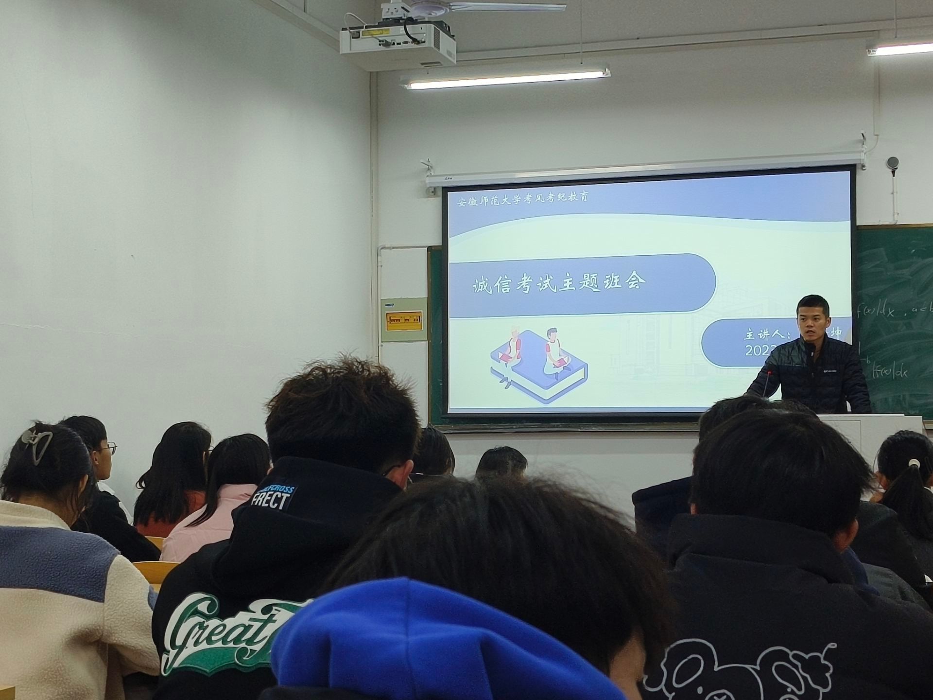 期末考试将至,为帮助同学们尽快进入复习状态, 进一步规范学校考试工作,树立良好的考风、考纪, 12月5日晚19:00,在辅导员魏泽坤的组织下,23级食品科学与工程专业于教学楼1313召开了以“诚信考试”为主要内容的主题班会。