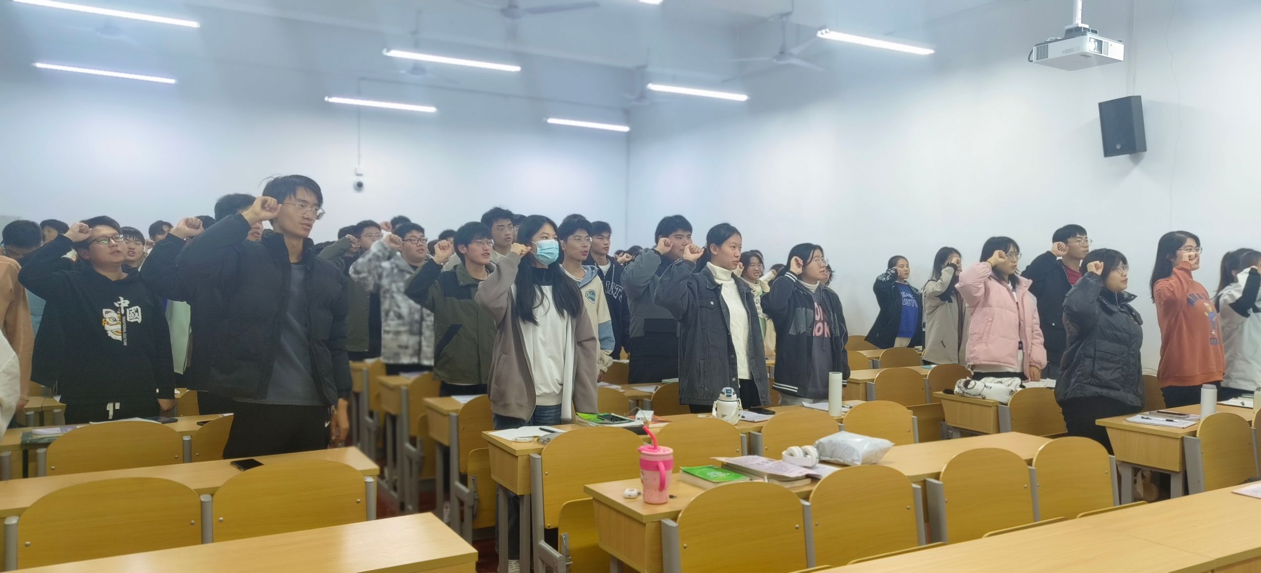 魏泽坤在会上向同学们讲解了关于考试作弊的危害,不仅践踏了诚信理念,加剧了信用危机,也助长了部分学生不劳而获、投机取巧的心理。同学们共同学习了相关规章制度,魏泽坤通过讲述身边真实的反面例子,告诫同学们切勿触碰诚信考试的底线。全班同学在班长的带领下进行庄严的诚信考试宣誓,会议在同学们铿锵有力的誓词中圆满结束。