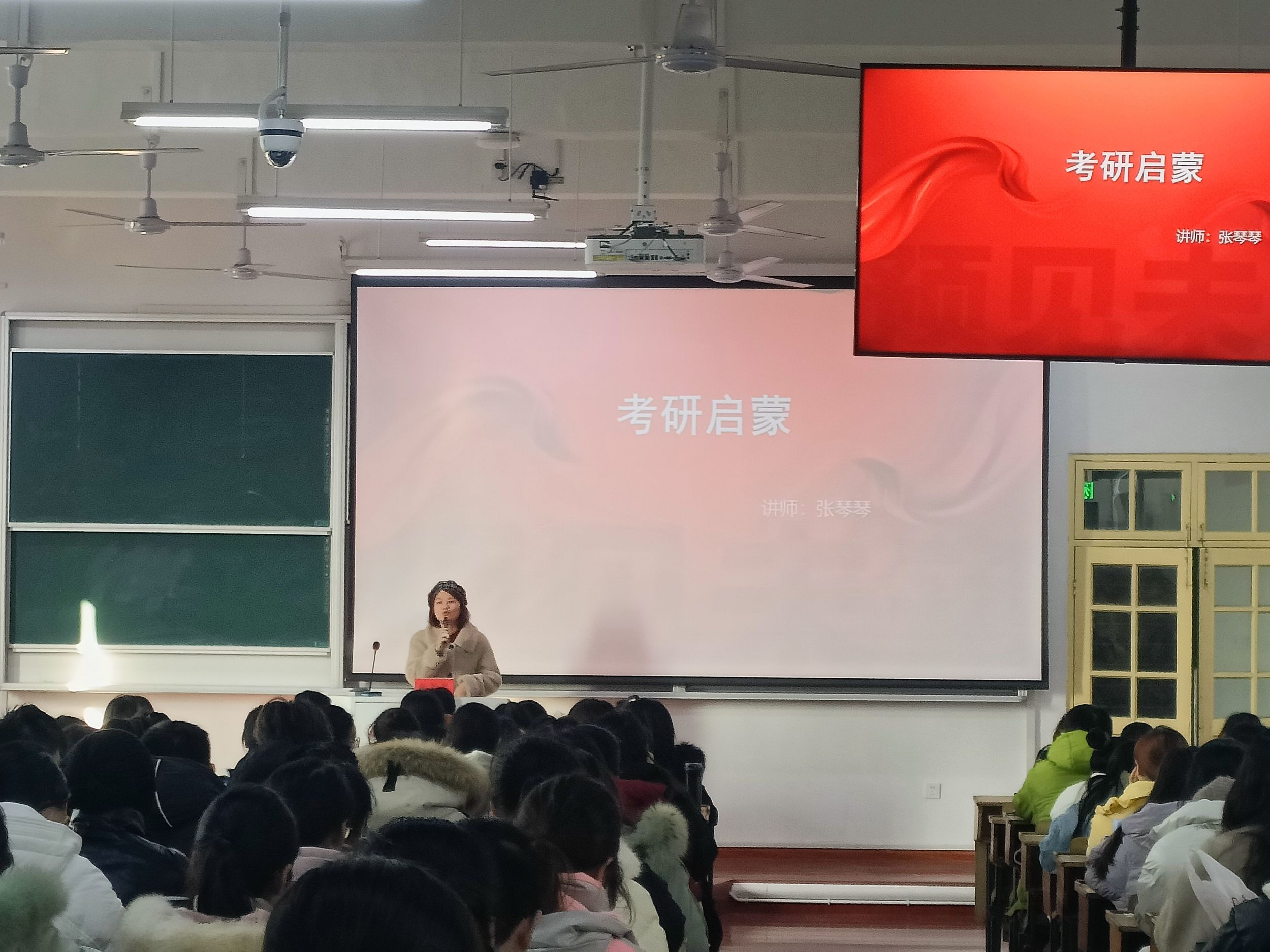 会上,张琴琴对考研进行指导。“选择不对,努力白费”,她简洁有力地强调考研前期准备的重要性。张琴琴通过历年考研数据分析,向同学们直观地展示考研的宏观形势,并强调在考研择校时要注意目标院校的考研报录比、所在地区、参考书目等。接着,张琴琴向同学们普及考研常识,为同学们辨识专硕和学硕、全日制和非全日制、一区和二区的区别。分享最后,张琴琴强调,同学们一旦选择了考研,就要做好吃苦和坚持到底的准备。