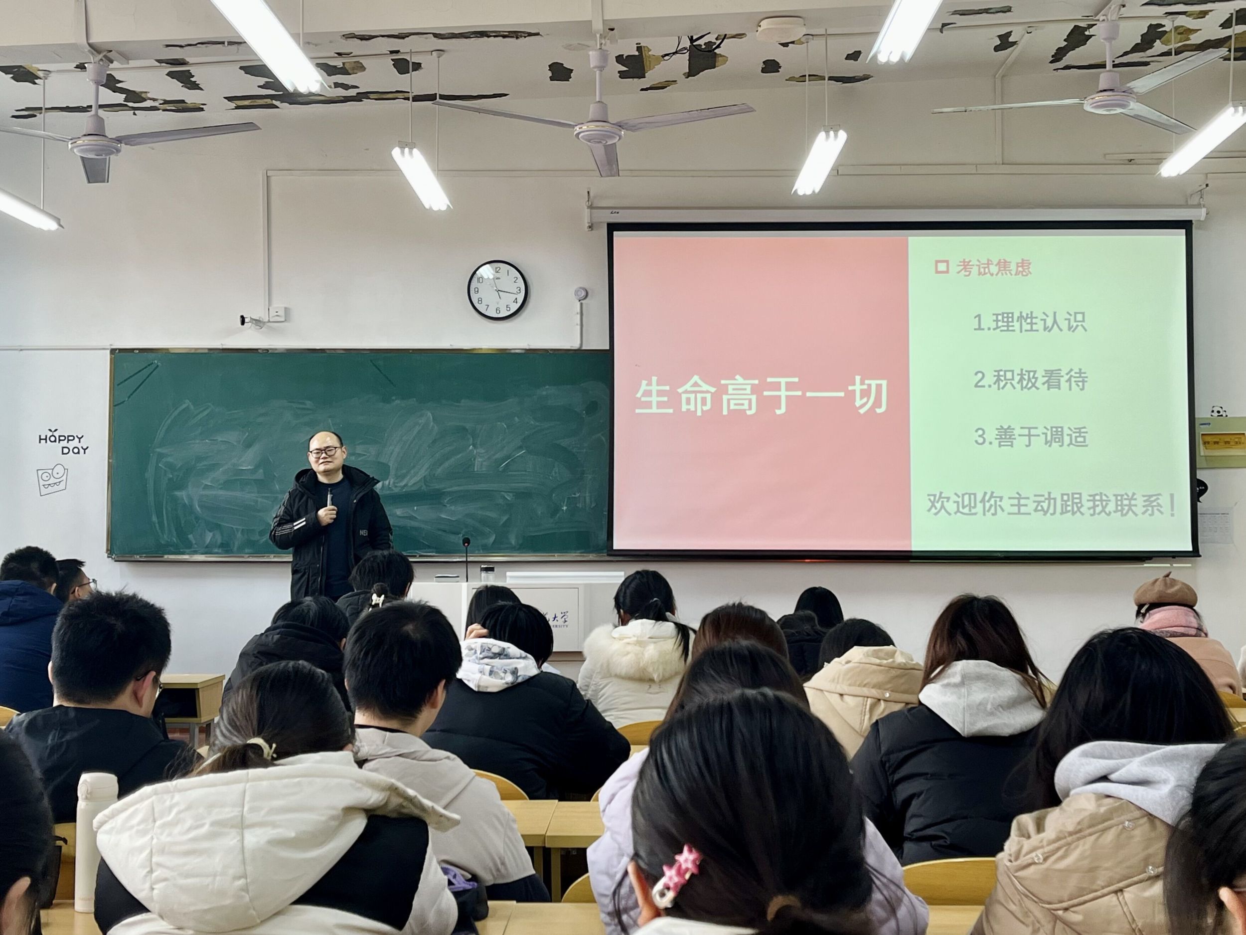班会上,何馗馗强调认真备考、诚信考试的重要性,分析了考试作弊的巨大成本和恶劣影响,介绍了期末考试考场纪律要求以及相关违纪处分条例,并就备考准备给出了合理建议。针对考试焦虑情绪,他指出,同学们要理性认识期末考试的性质和价值、积极对待备考过程中的困难、善于调适焦虑等负面情绪。他还就网络诈骗、交通安全等进行警示教育和提醒。