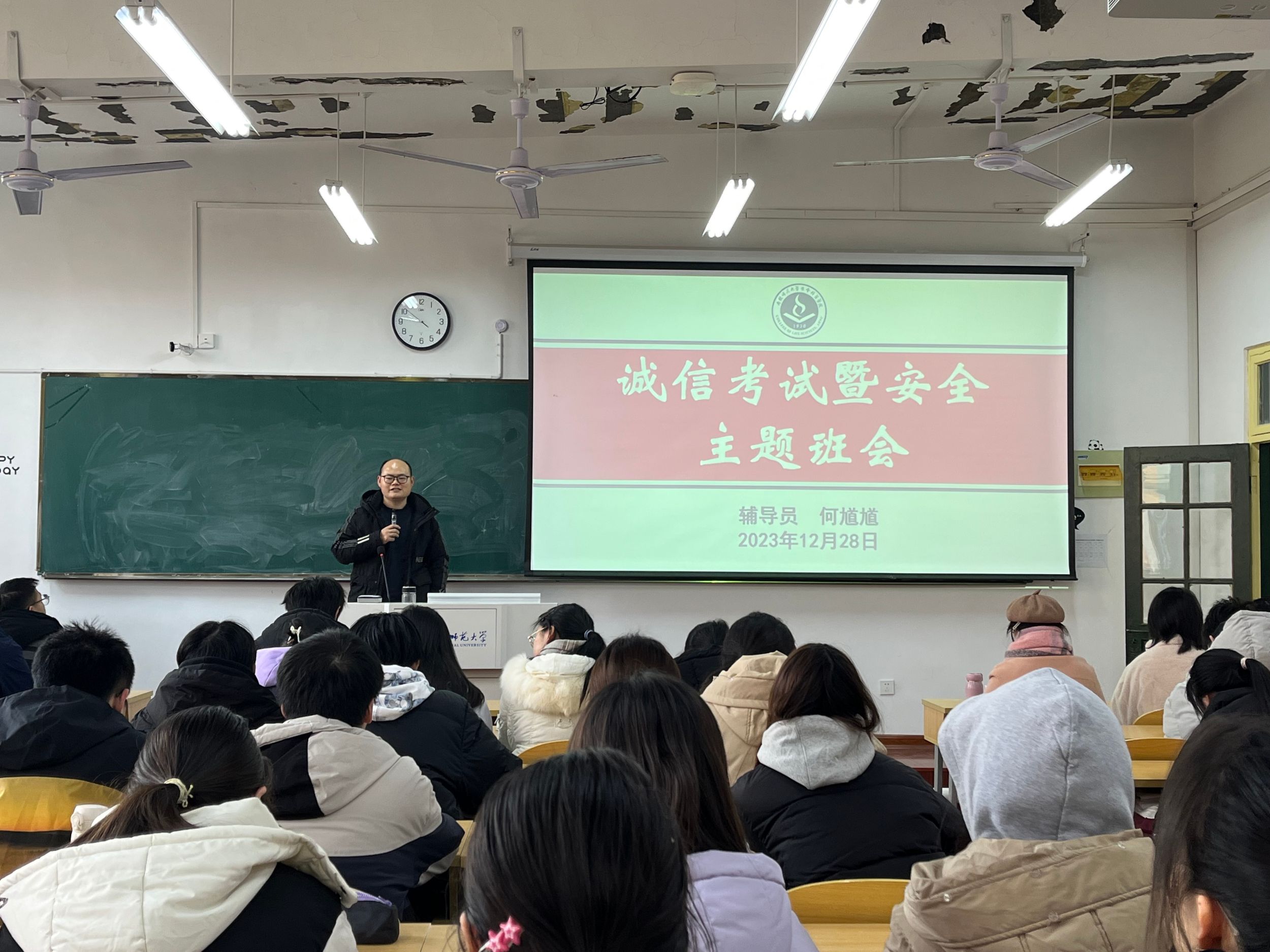 12月28日上午,76net必赢线路检测中心2022级生物科学专业召开诚信考试暨安全教育主题班会。班会由辅导员何馗馗主持主讲。