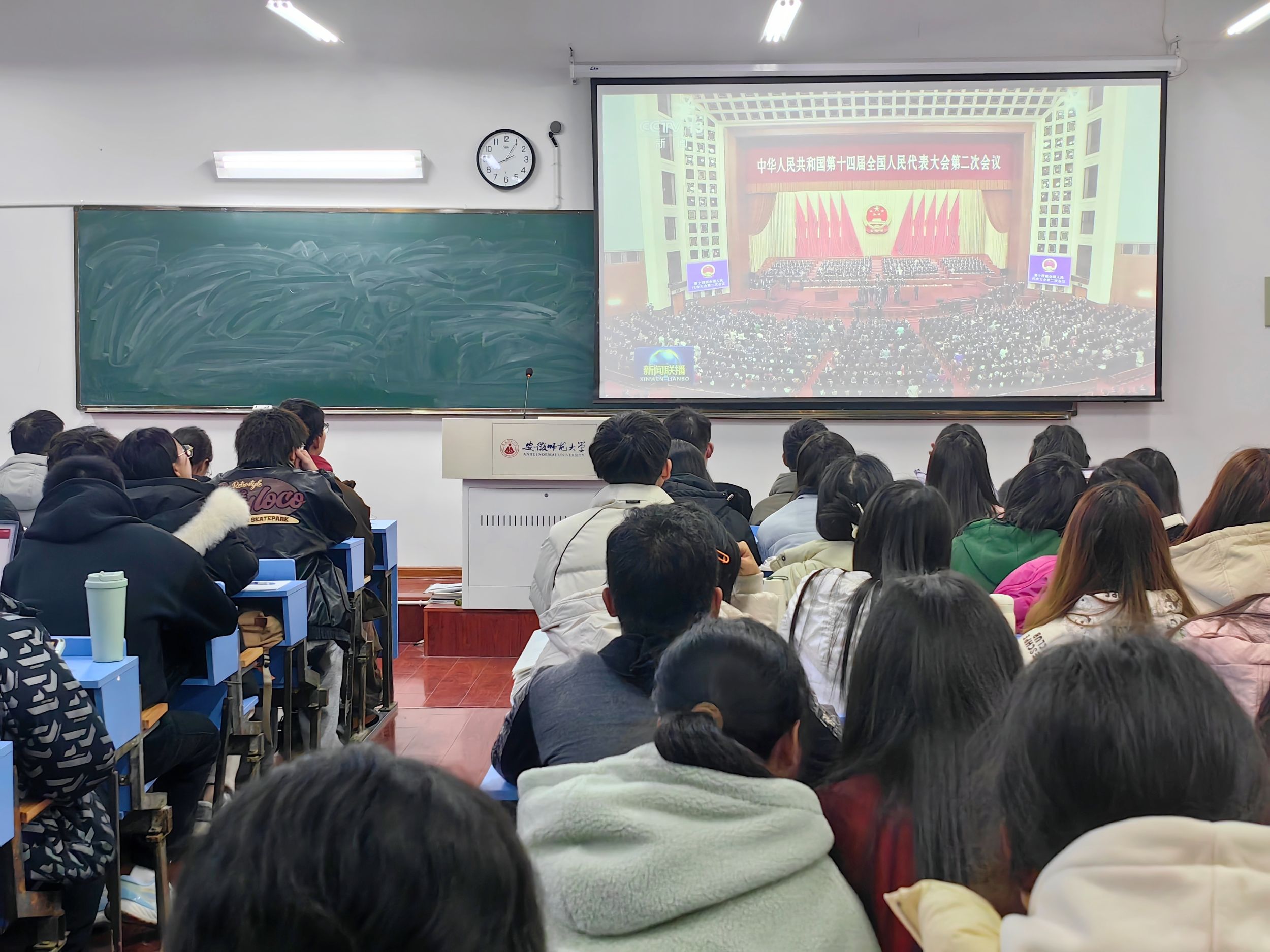 班会伊始,全班同学一齐学习了两会精神,刘梦婷号召同学们关心时事政治,紧跟时代步伐。