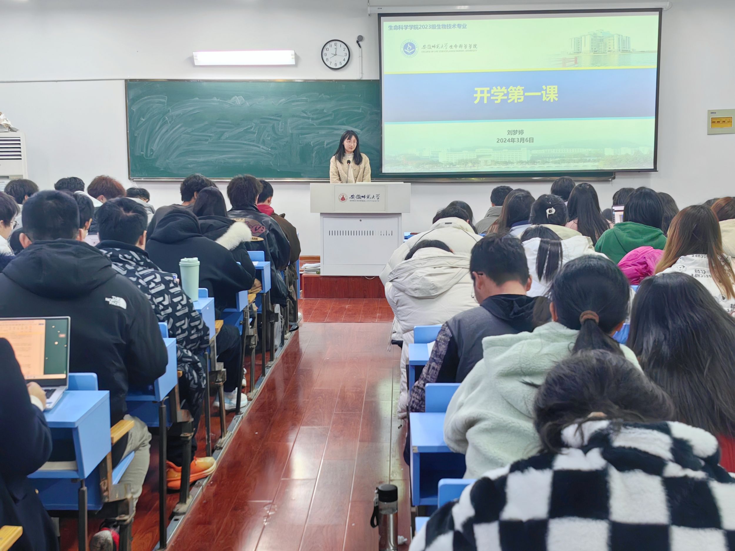 (本网讯 甘桂明)3月6日晚20点,23级生物技术专业于教学楼1203教室召开“开学第一课”主题班会,班会由辅导员刘梦婷主持。