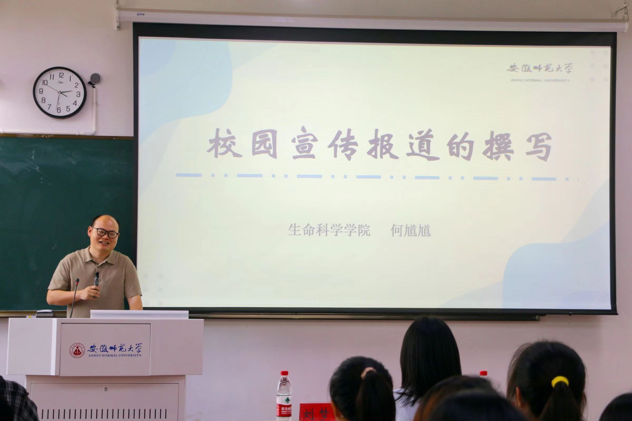 辅导员何馗馗详细讲解了校园宣传报道的撰写方法,从写作方法和注意事项等方面进行了讲解,并辅以实际案例加以说明。强调写作时要做到格式正确、逻辑清晰、语言精炼。刘梦婷进行总结讲话,强调参训学生骨干应进一步吸收学习培训内容,希望全体团学骨干能各尽其责、各司其职,认真细致地完成学院布置的每一项工作,提升学院宣传工作水平。