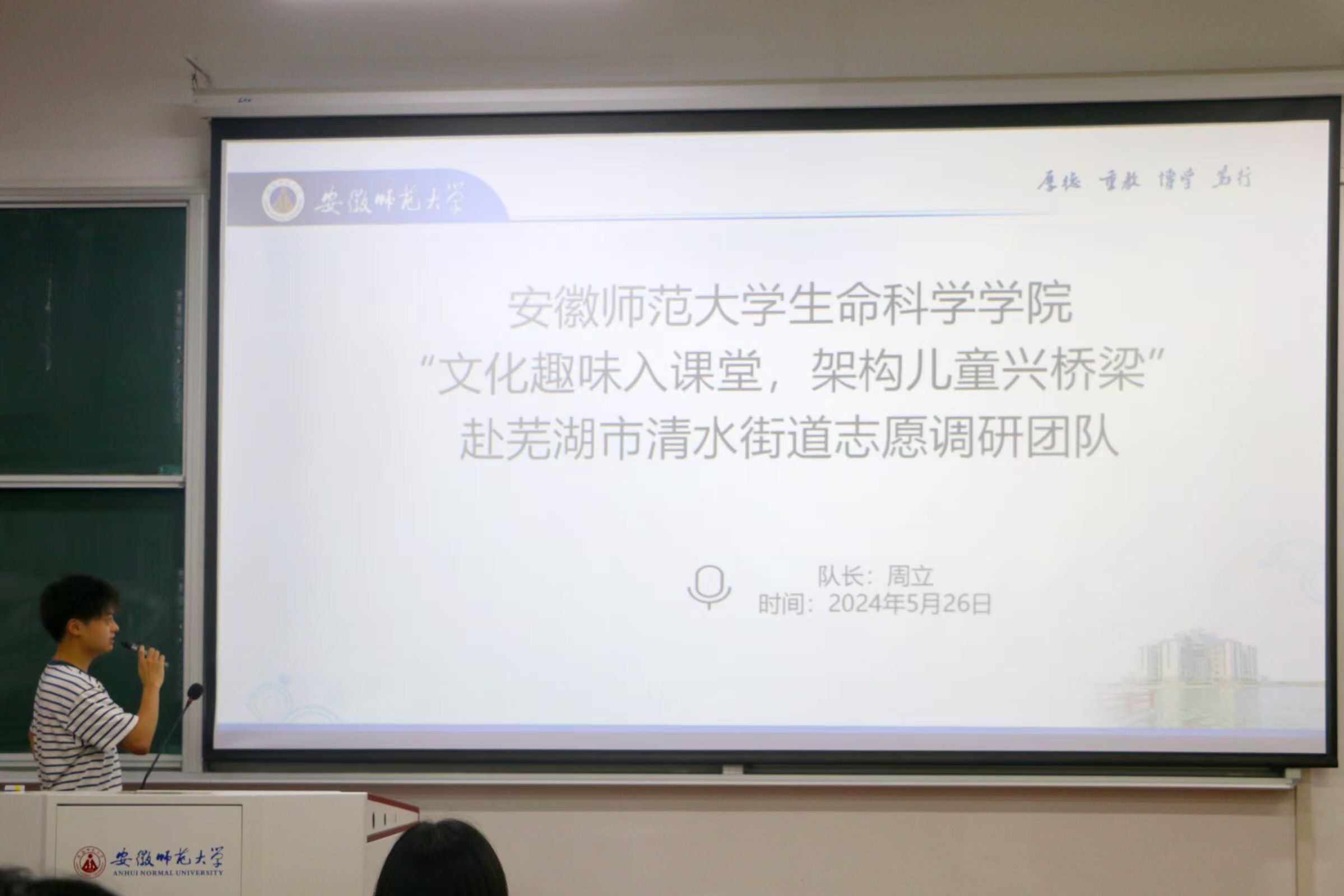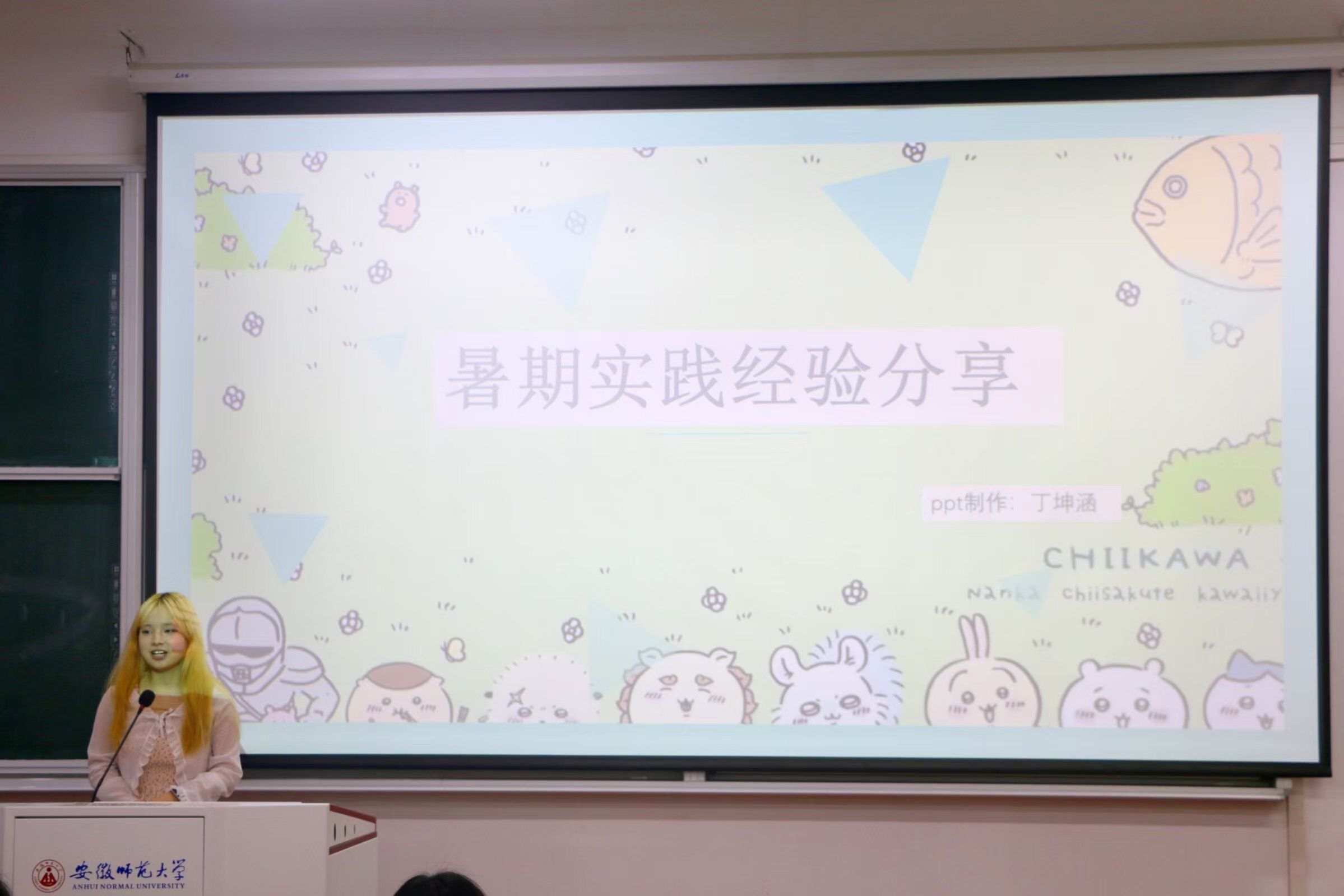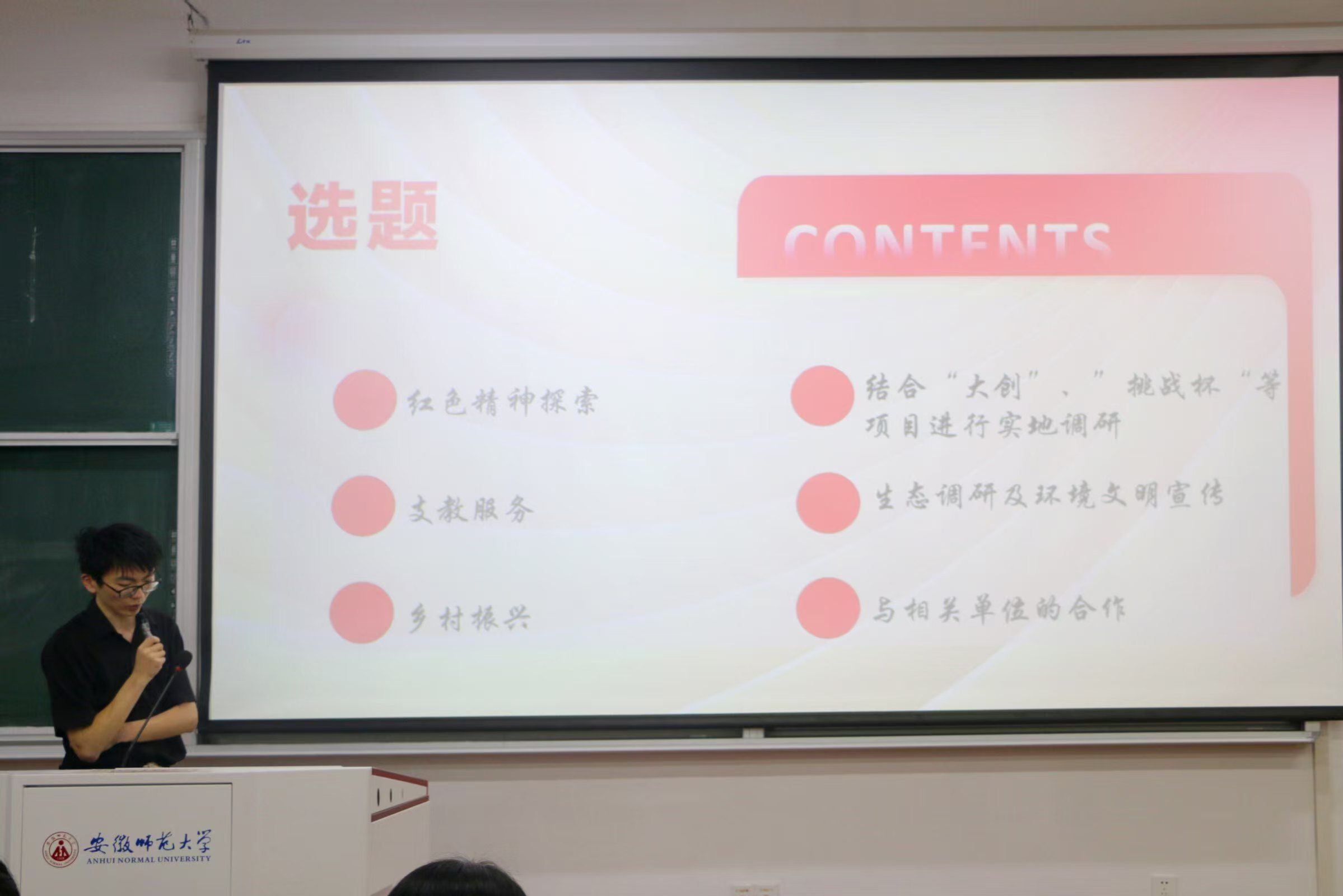 最后,学院往届优秀团队“文化趣味入课堂,架构儿童兴桥梁”赴芜湖清水街道志愿调研团队队长周立、赴芜湖防艾遏核理论宣讲本科生暑期社会实践团队郭瑄和赴铜陵“实地调研长江重点流域十年禁渔成效”本科生实践团队丁坤涵,分别从项目选题、团队协作、项目答辩、活动实践与突发状况处理等方面分享暑期社会实践活动经验。