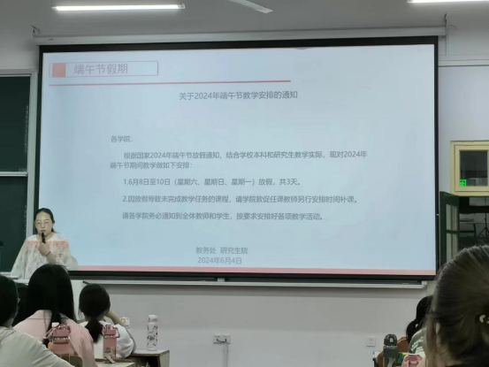 6月5日下午,2023级生物科学专业于教学楼1401教室开展安全教育主题班会暨近期工作安排布置会。23级生科全体同学参会,会议由辅导员胡玮老师主讲。