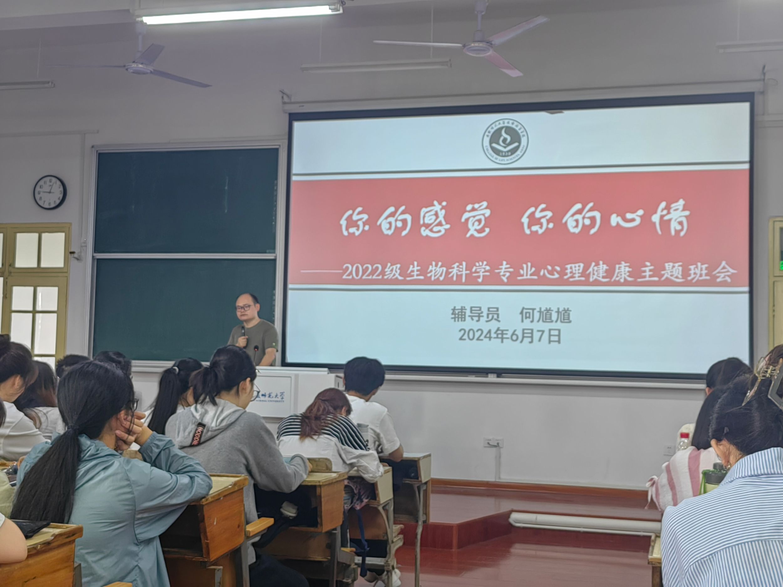 6月7日上午,2022级生物科学专业召开心理健康教育主题班会。班会由辅导员何馗馗主讲。