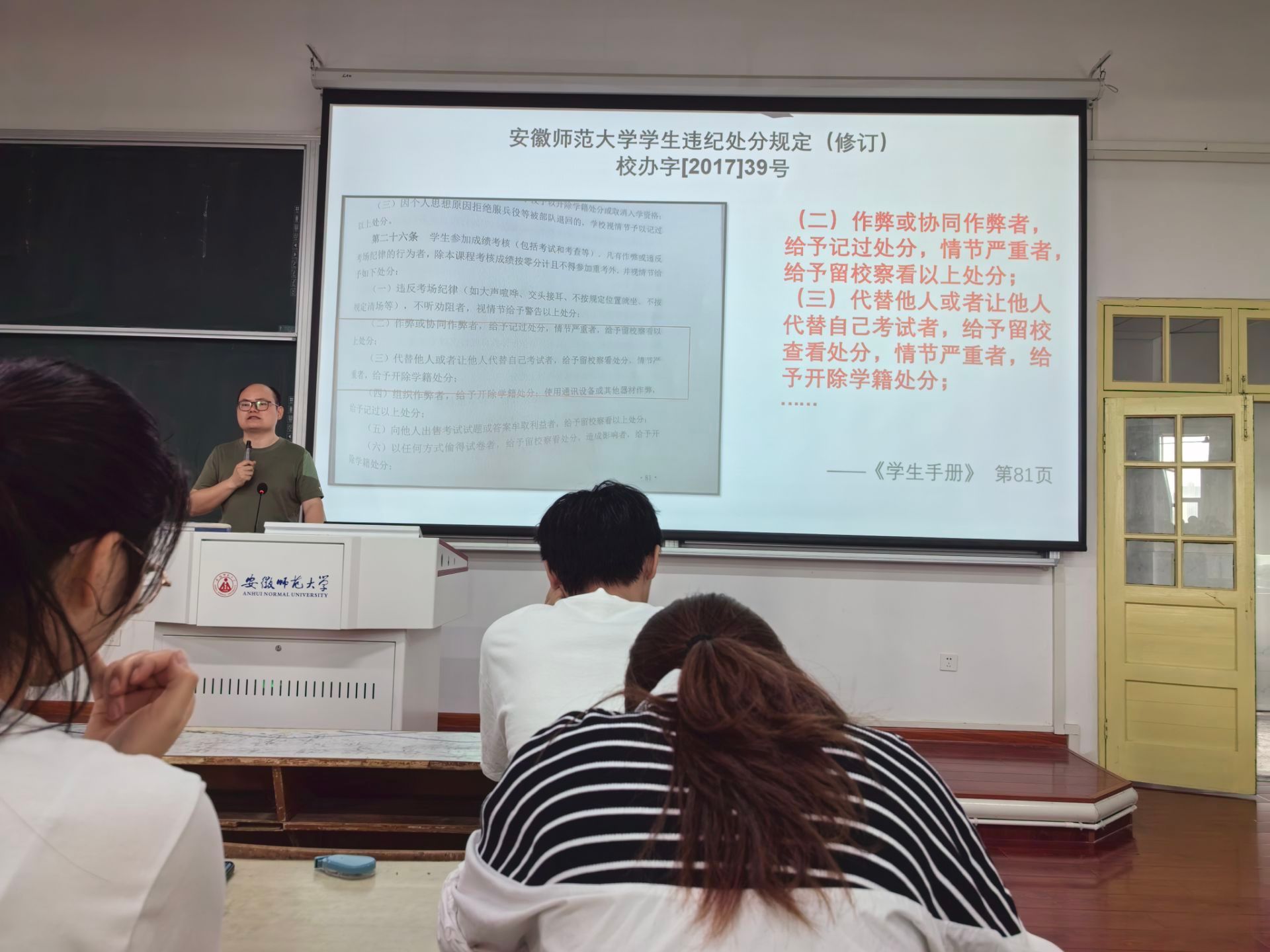班会上,何馗馗解读了学校相关违纪处分规定,强调了诚信考试的必要性和作弊成本,要求同学们做到认真备考、诚信考试、老实做人。就近期学习生活中的安全隐患,他还提醒大家要时刻保持安全意识,提高自我保护能力。面对现阶段的烦恼和焦虑,他希望同学们能够更好地接纳自我、理清生活节奏以缓解疲惫、遇到困难多寻求外界帮助、平和应对各种挑战。他还对小学期、学院搬迁和贫困生认定等工作进行通知安排,解答了同学们的疑问。