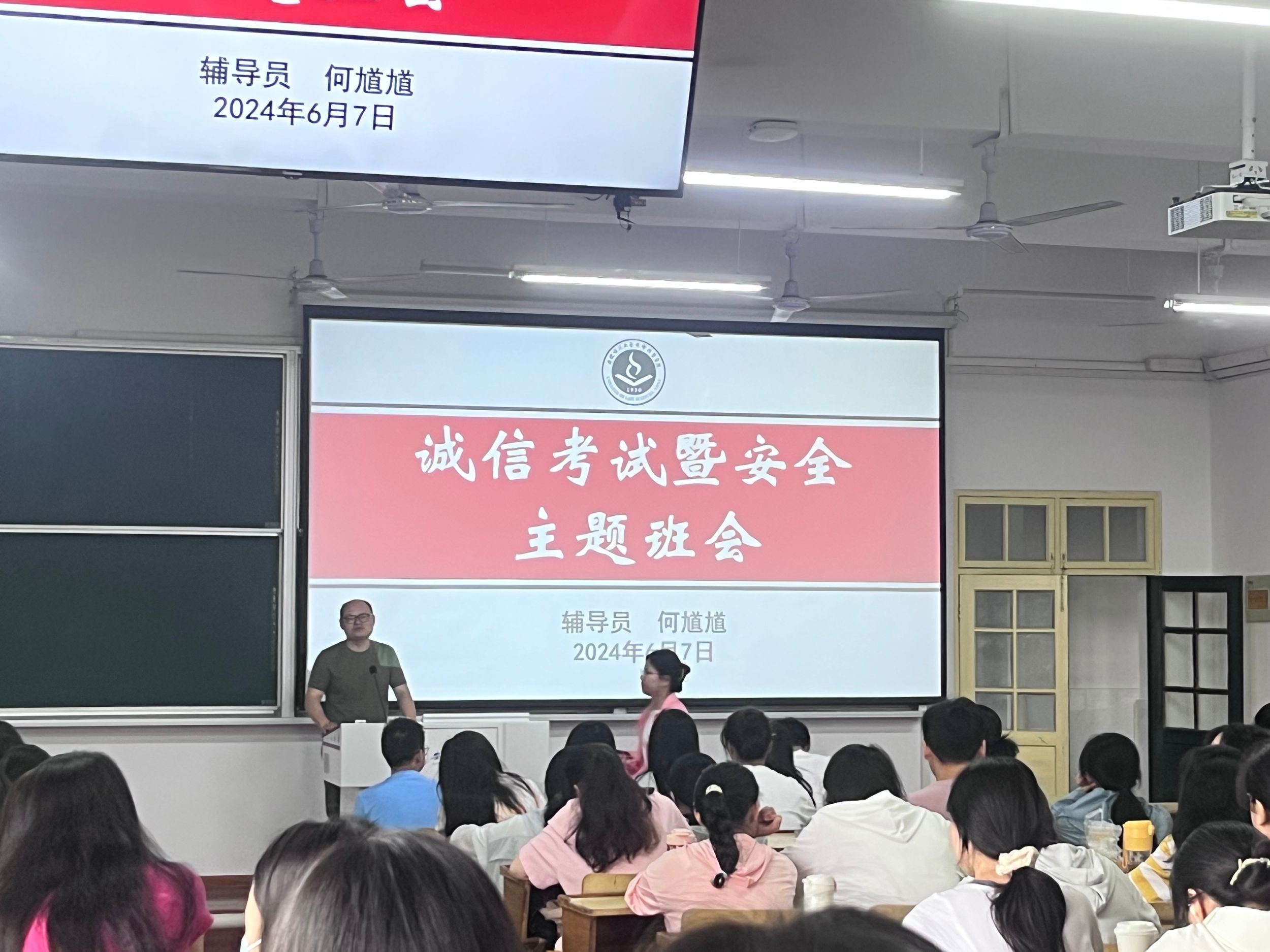 6月7日上午,76net必赢线路检测中心2022级生物科学专业在教学楼1401教室召开诚信考试暨安全主题班会。班会由辅导员何馗馗组织主讲。