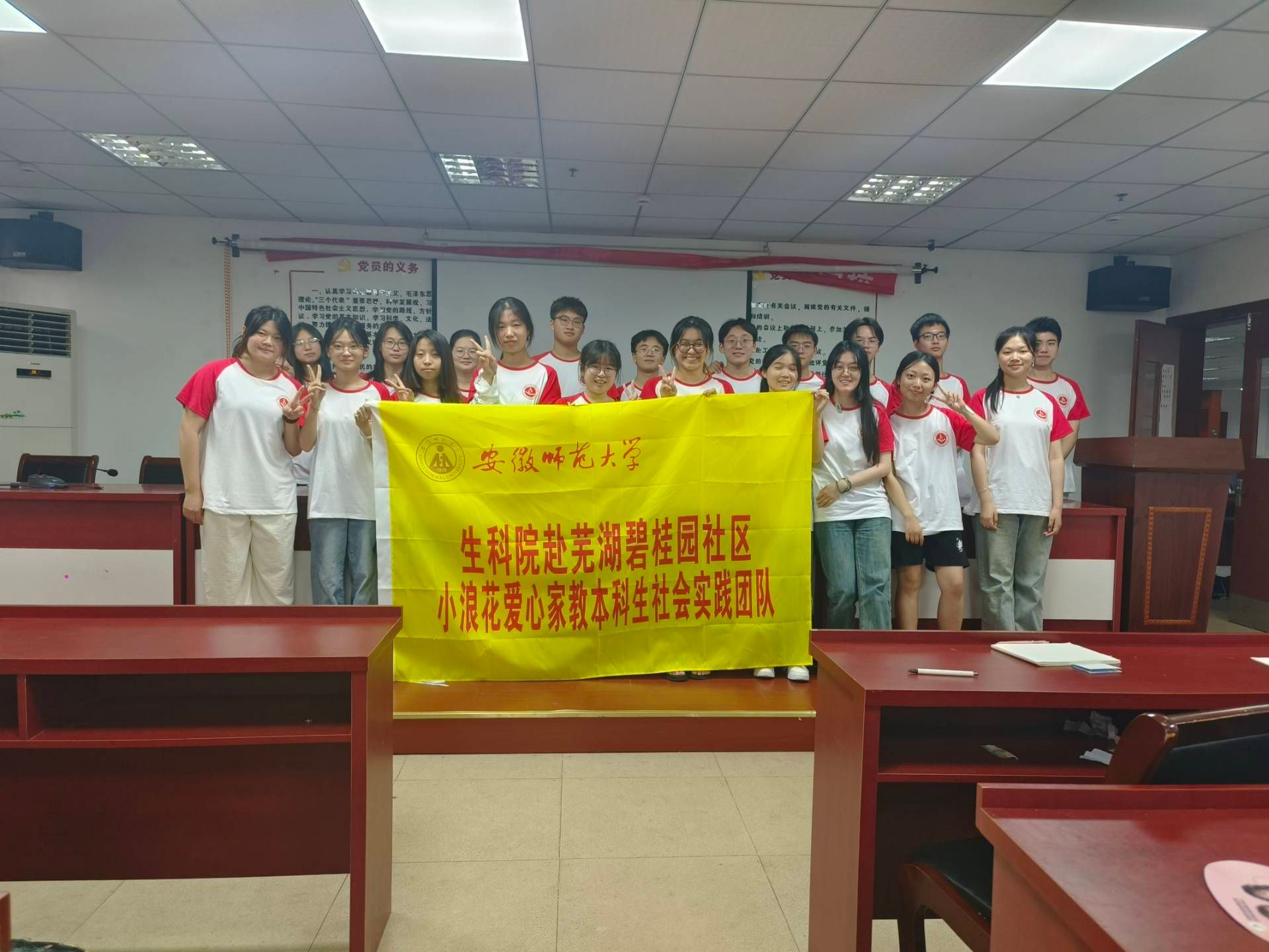 本网讯(生科院 倪涛 马跃溪 郑甜甜)7月9日,生科院赴芜湖市碧桂园社区小浪花爱心家教本科生社会实践团队在芜湖碧桂园小区展开暑期实践三下乡活动。该团队响应学校号召本着“爱教、乐教、善教”的宗旨,弘扬“厚德、重教、博学、笃行”的教育理念和文化,展开了以践行“做新时代的合格大学生”为主题的丰富多彩、影响深远的社区志愿家教活动。在火热的七月,走进社区、服务社区、奉献社区,谱写了当代大学生社会实践的美丽篇章。