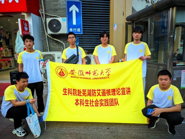 7月8日,生科院赴芜湖防艾遏核理论宣讲本科生实践团队在赭山公园开展相关宣传活动,在宣传过程中,团队成员同当地群众之间进行了友好交流,询问了人们对于艾滋病、肺结核的了解程度,解答了一些人们对于疾病的误区,提高了人们预防艾滋病、结核病的意识。