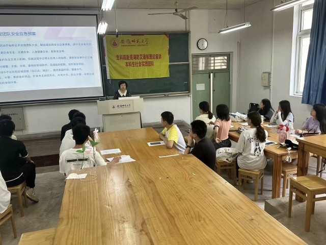 为更好地向群众传授防艾遏核知识,团队邀请了校医院副院长段萍老师进行了艾滋病、结核病的预防、传播和治疗的理论知识宣讲,同时段老师也对团队实践过程中可能出现的安全问题,如中暑、扭伤、动物抓伤等进行了提醒并给出了对应的急救措施。团队成员认真学习,为后面的宣传活动奠定了坚实的基础。