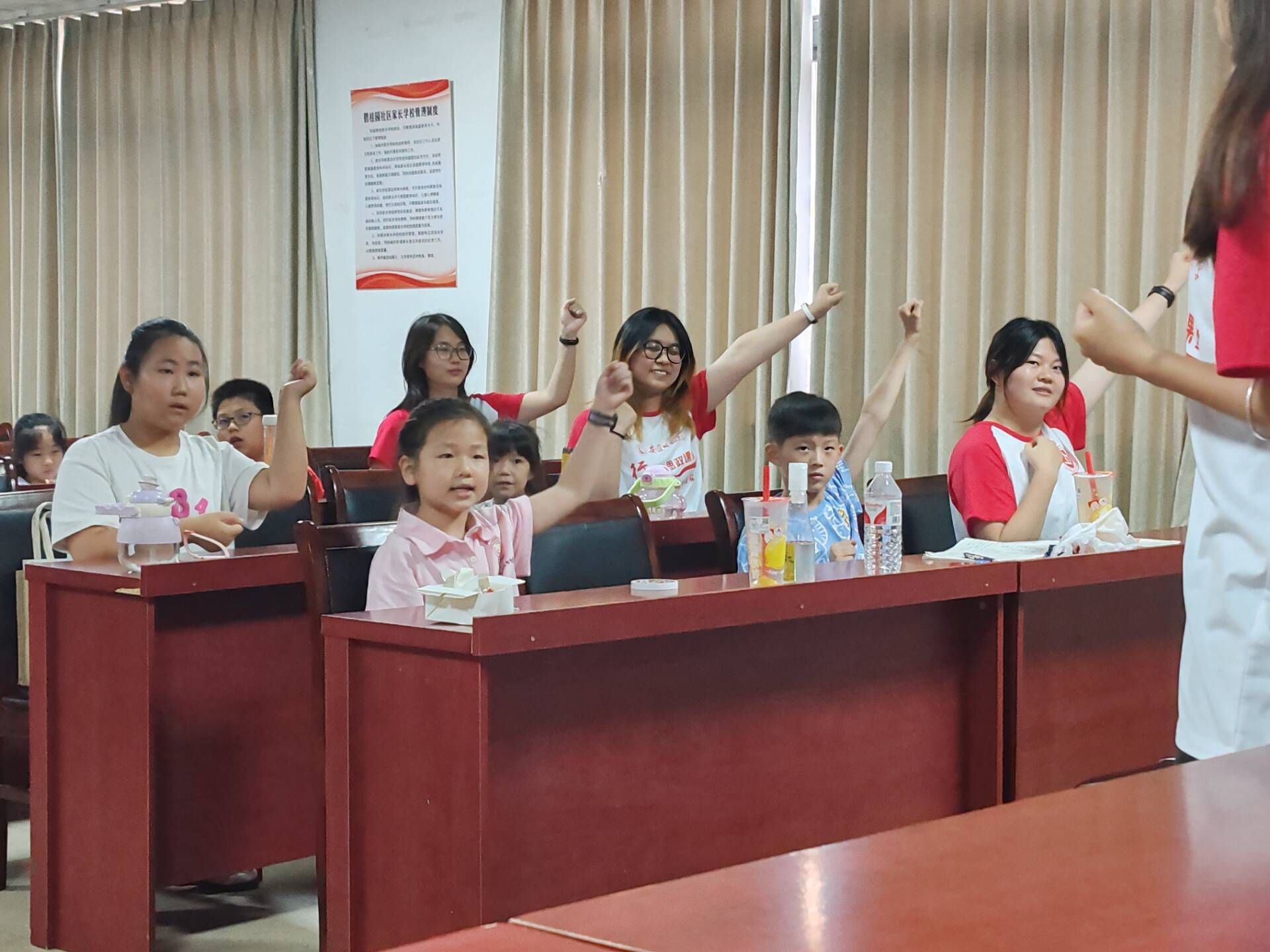 辅导完作业后由孙涵,王亦萱,聂晓婷三位志愿者组织的手势舞教学。手势舞教学活动采用了一系列简单而富有吸引力的歌曲,如《勇气大爆发》、《一年级》、《小美满》,配合易于学习的手势动作,让孩子们在快乐中学习,同时也锻炼了他们的注意力和记忆力。大学生志愿者们首先示范每一个动作,然后耐心地指导每一个孩子,确保他们能够跟上节奏并正确做出相应的手势。在表演过程中,有些孩子比较害羞,不善于展示自己,志愿者们就通过掌声的方式去鼓励他们,让他们克服紧张情绪,勇敢展现自己,建立起他们的自信心和自我表达能力。这项活动不仅提升孩子们的身体协调能力和节奏感,更通过这种限时的学习方法锻炼他们的记忆力和关注力,感受音乐的节奏和情感,提高音乐感知能力。手势舞将运动、艺术和传统文化融为一体,调动孩子们眼、耳、手等多器官训练,增强看、听、动的能力,加强了他们的综合素质,生动体现了智育、德育、美育的结合。