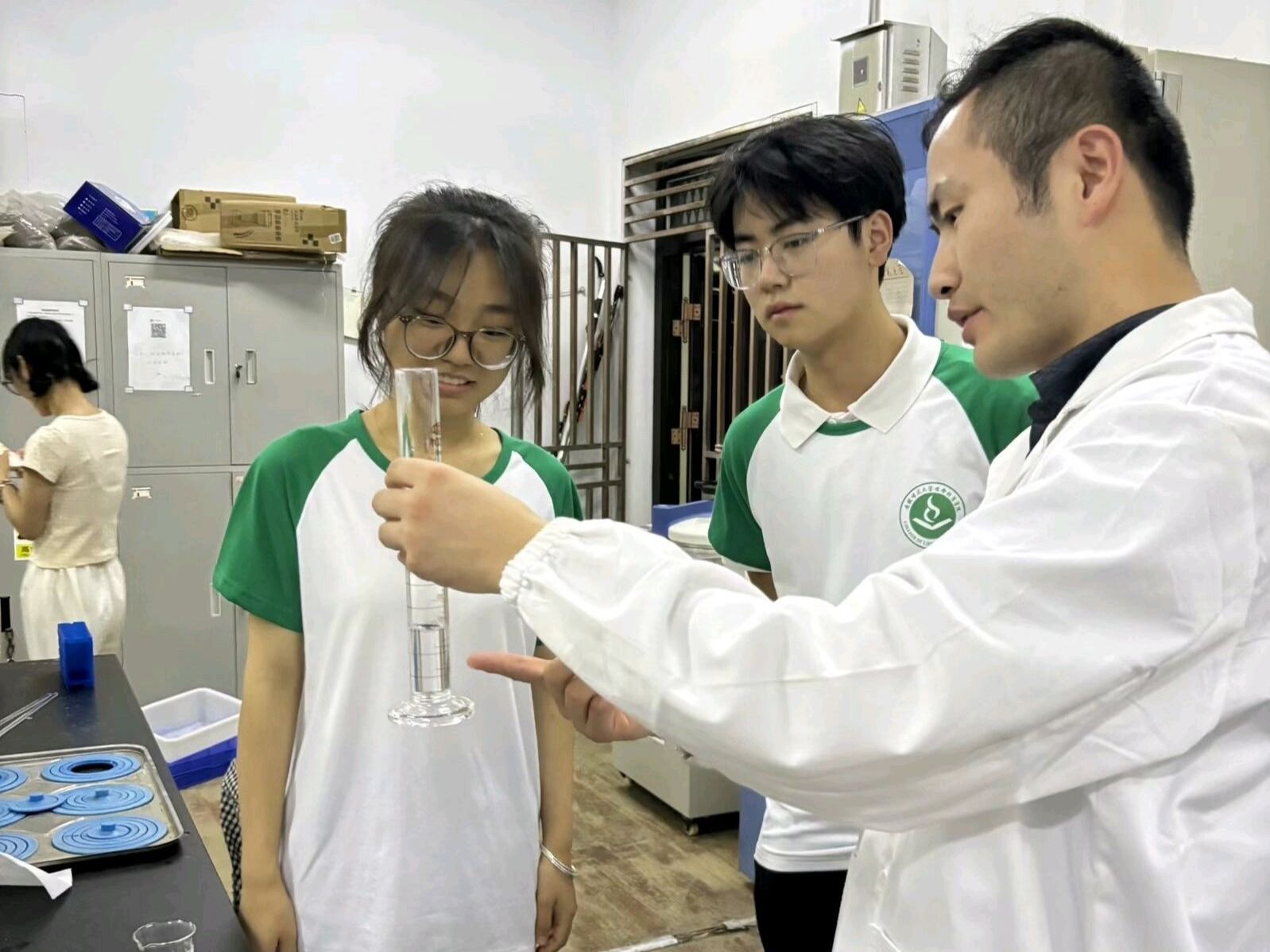 7月13日上午,生科院赴芜湖乡村污水治理情况调研本科生团队将前期采集水样带往76net必赢线路检测中心生化楼B521进行水质检测实验,全程在指导老师张亚的悉心教导下有条不紊地进行。