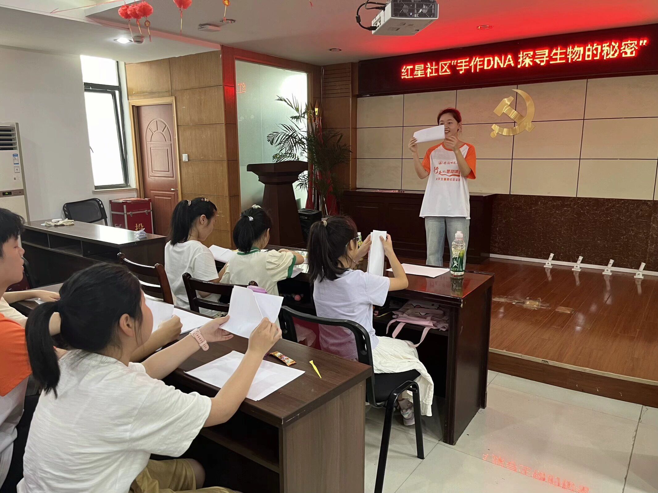 紧接着,志愿者们巧妙地将科学知识的普及与趣味活动相结合,引领参与者踏上了一段DNA科普之旅。通过制作纸片模型来模拟DNA双螺旋结构,他们为群众揭开了遗传学的神秘面纱。志愿者们生动地讲解了DNA的结构、遗传信息的传递机制,以及基因如何影响生物特征等科学知识,使原本复杂的科学内容变得直观易懂、生动有趣。在DNA双螺旋模型制作环节,活动现场更是热闹非凡,吸引了众多家庭的热情参与。志愿者们耐心细致的指导,让参与者在轻松愉快的氛围中深入了解了DNA的结构特点、遗传信息的传递方式以及基因如何塑造生物特征等科学原理。这一环节不仅锻炼了参与者的动手能力,还激发了他们对科学探索的浓厚兴趣。