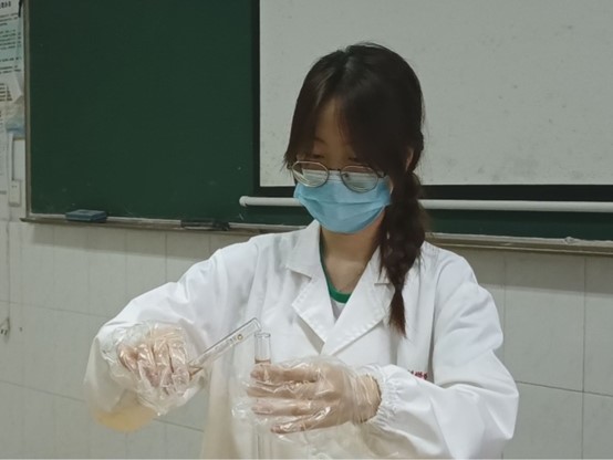实践组人员使用电子秤、恒温水浴锅、量筒等仪器进行实验材料的配置,确保实验的真实性、科学性。实验的负责人与宣传组人员密切交流,确保实验视频的录制能顺利进行。在实验的过程中,操作人员严格遵守实验室安全规范和实验操作规范。在实验结束后,队员将实验室打扫干净,检查水电以及门窗是否关闭,确保实验室和实验人员的安全。