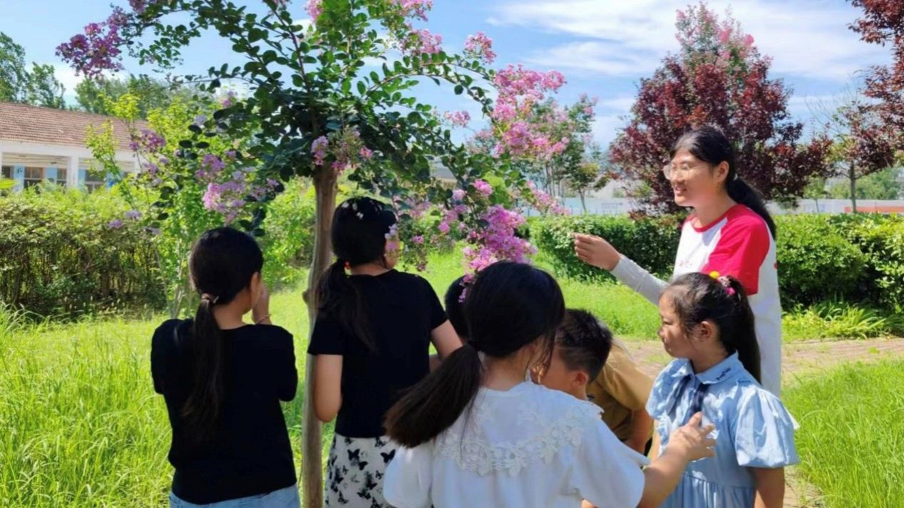 本网讯(生科院 李佳鑫)为弥补农村教育平时所欠缺的素质教育,发展学生的综合能力,助力三下乡实践活动正常开展。7月22日,生科院“优师专项”赴双庙中心学校爱心支教本科生社会实践团队打破传统的教学模式,将实践与学习结合,带领学生们进行校园植物认知。本次活动主要内容是向同学们科普校园内植物,引导孩子们保护自然。