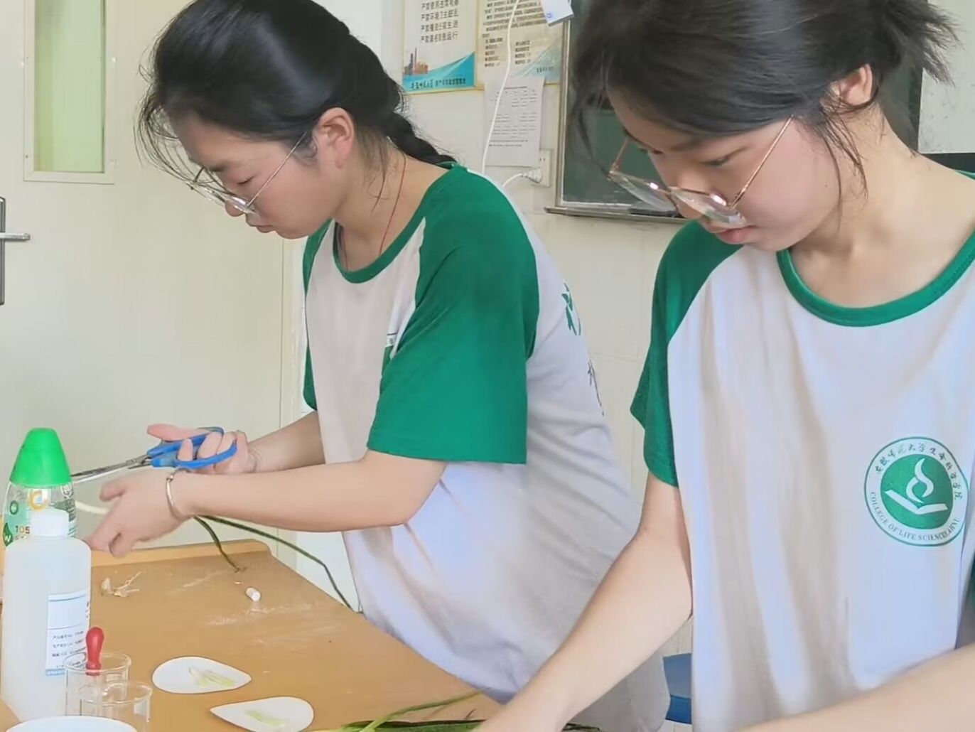 本网讯(生科院 吴睿)为锻炼师范技能,丰富课堂活动,书写青春担当,7月21日下午,生科院赴芜湖小学期本科生社会实践团队在生化楼A109分别录制了细胞吸水与失水现象的实验视频和T2噬菌体模型教具制作视频。