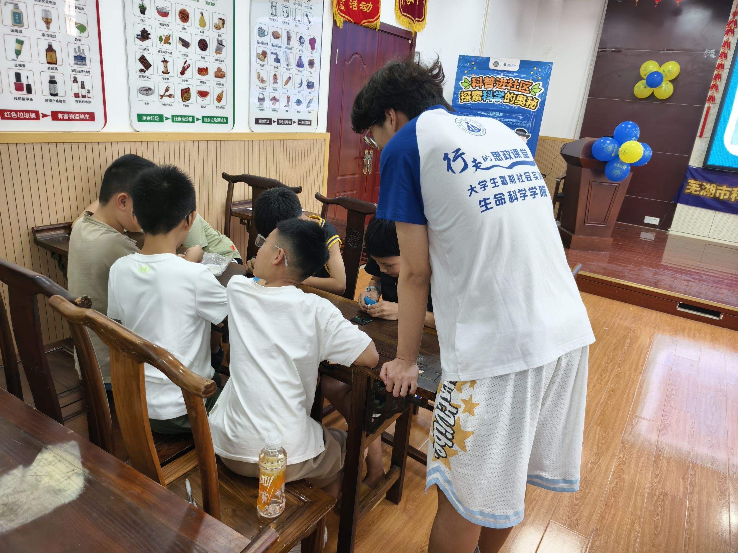 本网讯(生科院 陈斯桐 荣成浩 张心雨)习近平总书记高度重视中小学的教育工作,强调激发青少年的科技创新能力。2024年7月19日下午,bwin必赢线路检测生科院赴安徽芜湖荒野科学城市自然教育本科生社会实践团队前往旭日天都社区参与由荒野科学城市自然教育中心所承办的“暖暖阳光照”科学实践课程活动,鼓励学生提出问题,设计实验,解决问题。