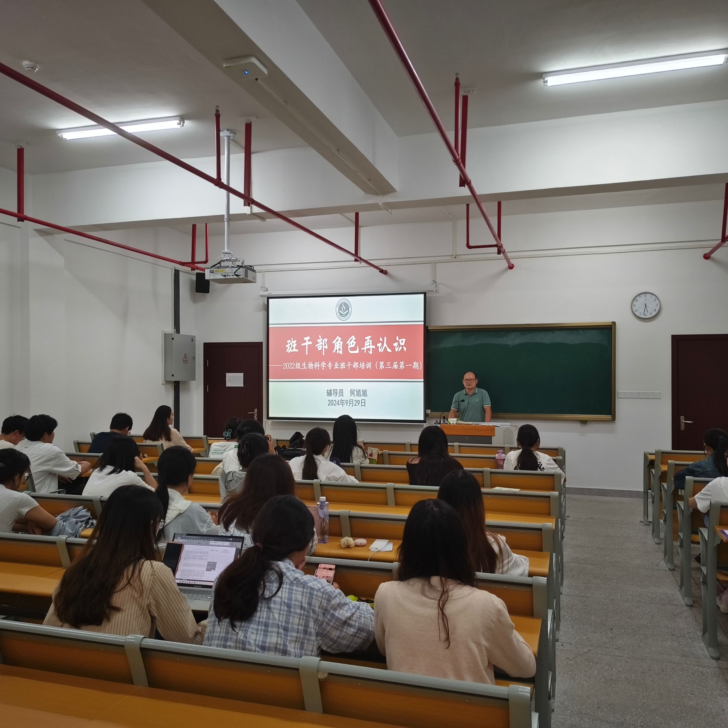 9月29日下午,2022级生物科学专业召开新一届班委培训会。培训会由辅导员何馗馗主讲。