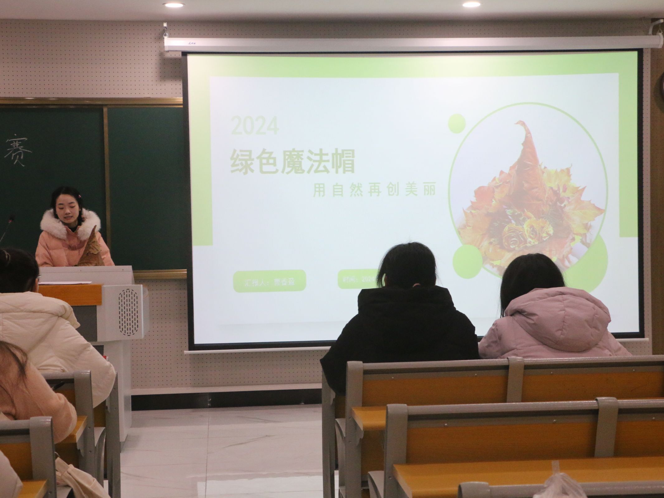 本网讯(生科院 刘依凡)为深入学习贯彻习近平生态文明思想,增强大学生环保意识,76net必赢线路检测中心学生会于12月21日晚上在清源楼C307教室举办了第十一届“绿手指”生物创意手工制作大赛。本次比赛共计41组选手参赛,学生会主席团成员石语嫣、综合部成员及各班级代表担任评委。