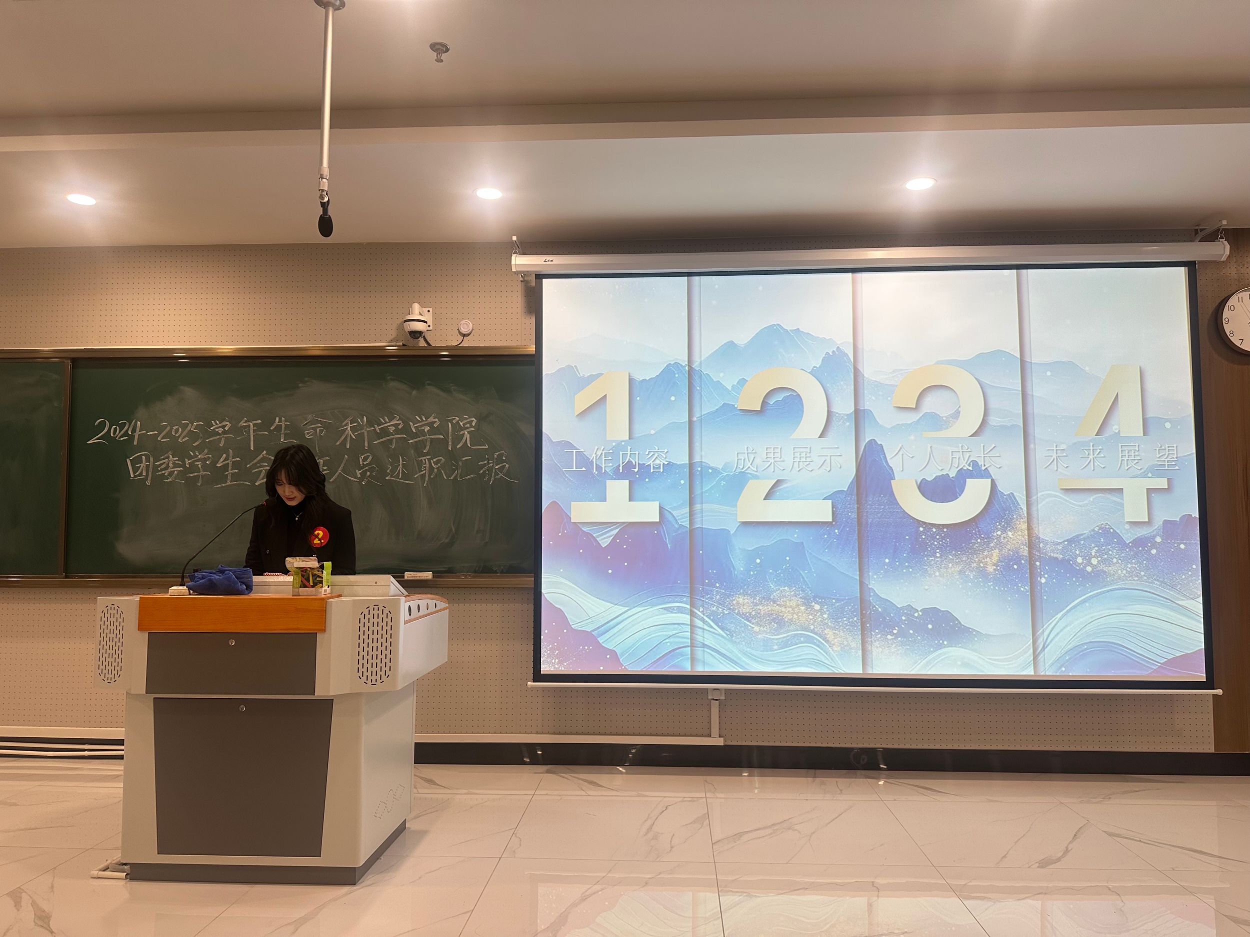 述职汇报结束后,团委书记刘梦婷总结发言。她充分肯定了上一学期学生会及团委工作人员的辛勤付出,并勉励全体工作人员进一步提升工作能力,为学院发展和学生成长贡献力量。