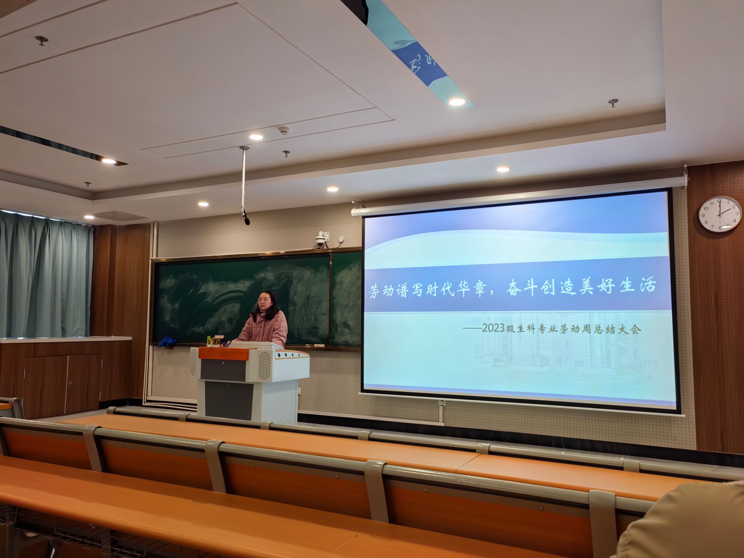 3月14日下午,2023级生物科学专业于清源楼c407召开“劳动谱写时代华章,奋斗创造美好生活”劳动周总结大会。2023级生物科学专业全体同学参会,大会由辅导员胡玮老师主持。