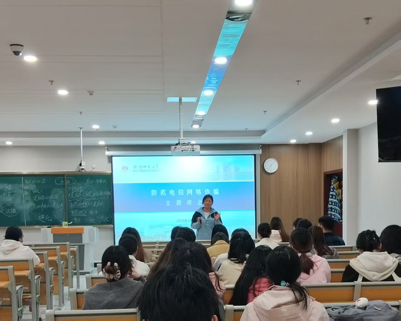 柴文杰从近期发生的电信诈骗典型事件入手,介绍了刷单兼职、冒充熟人、钓鱼链接、网购退款和校园贷等常见诈骗手段及其危害,分析了受害人上当受骗的主要原因。柴文杰向同学们郑重提醒:树立正确的价值观和金钱观,提高自身安全防范意识;及时安装国家反诈中心APP,开启来电预警功能;加强个人信息保护,发现诈骗后,利用“黄金30分钟”,冻结个人账户并及时报警。