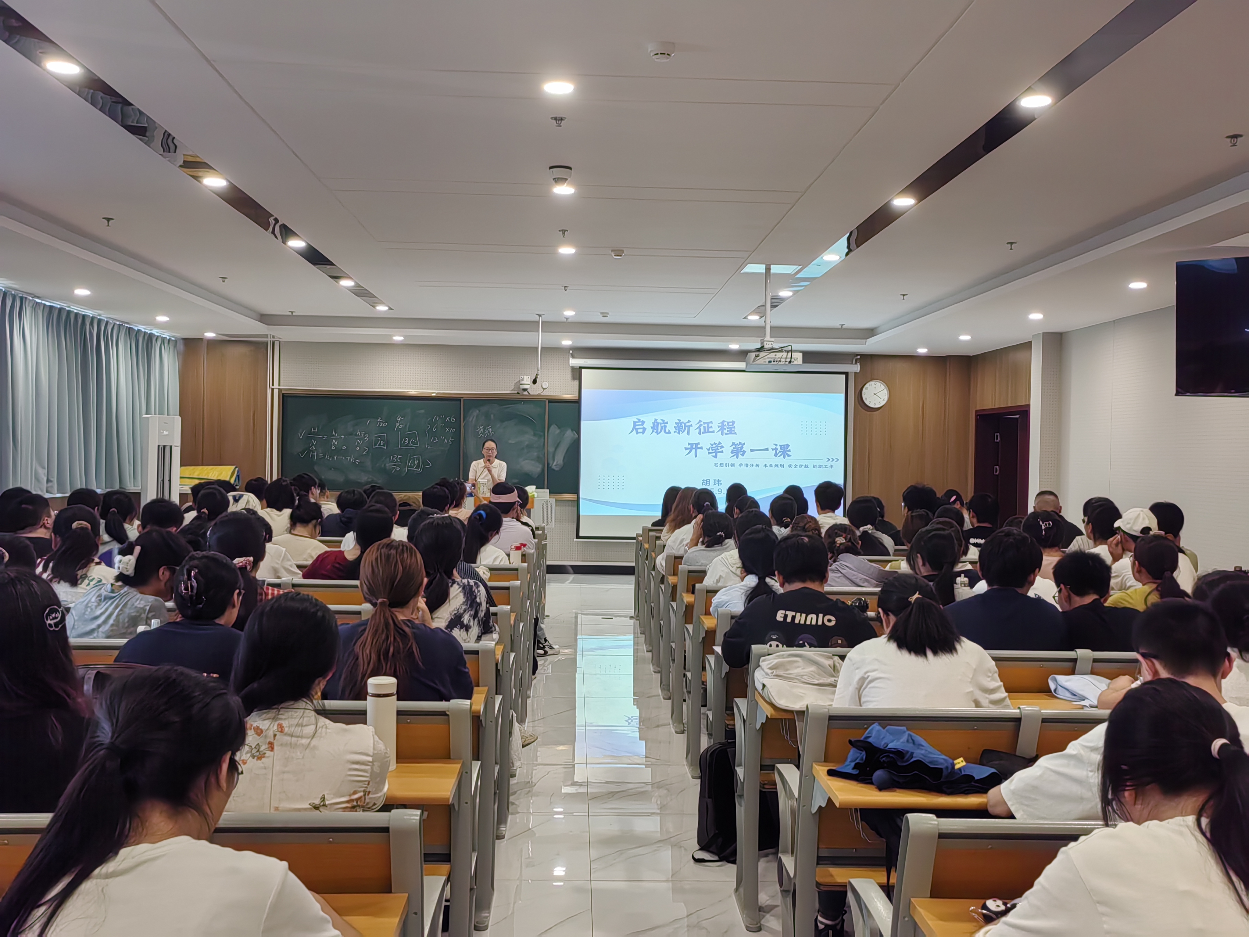 胡玮带领同学们回顾了近期举行的纪念中国人民抗日战争暨世界反法西斯战争胜利80周年大会,强调历史不容忘却,吾辈当自强不息。她对大二学年的整体学情进行分析,鼓励学生向优秀同学学习,促进共同进步。针对未来规划,胡玮重点强调大三学年的关键性,提醒同学们尽早明确考研、就业等发展目标,积极参与学科竞赛等重要比赛,合理安排学习计划。新学期在即,安全问题不容小觑,胡玮结合典型案例强调安全隐患,强化同学们在校的安全防范意识,并要求同学们及时调整状态,制定学习清单,以积极心态迎接新学期挑战。