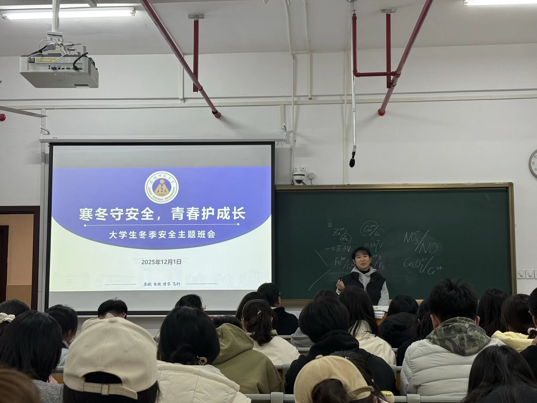 寒为切实筑牢 2025 级学生冬季安全防线,守护青年学子身心健康与财产安全,食品科学与工程专业在清源楼c208教室召开冬季安全主题班会。辅导员周文娟聚焦冬季校园高频安全问题,通过数据警示、案例剖析等形式,为全体同学送上全方位的安全“防护手册”。