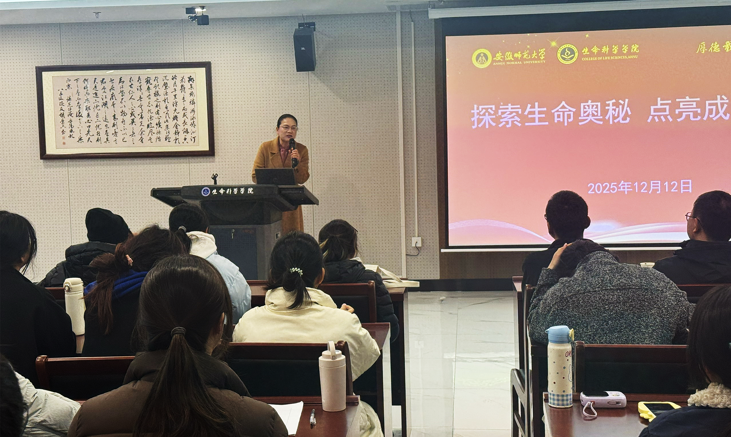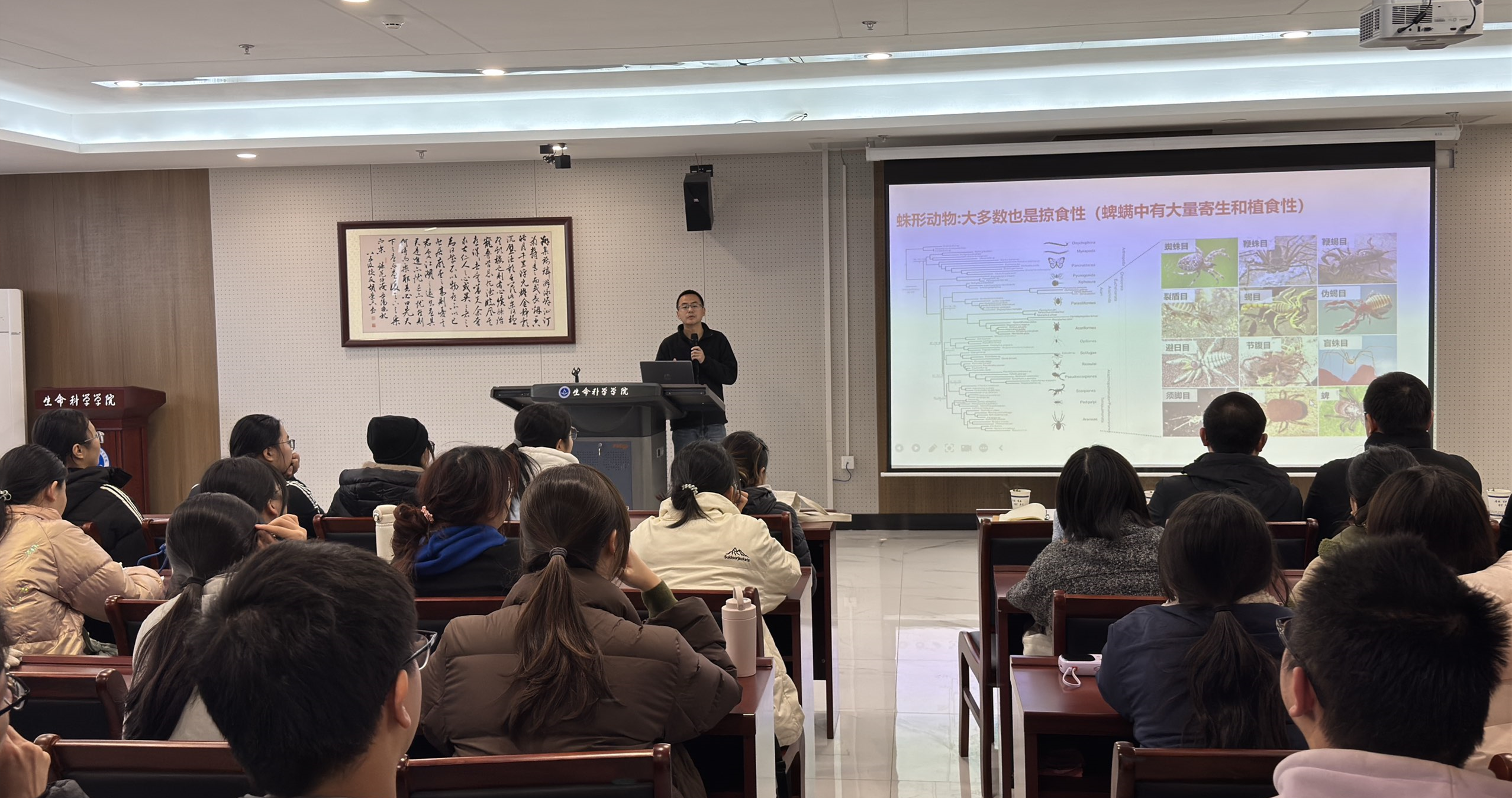 为推动学生理论知识与实践能力深度融合,12月12日,2024级生物科学专业举办科研项目师生对接会。院长朱国萍教授,青年科学基金项目(B类)获得者靳鹏宇教授,陈绍兴教授、罗林杰副教授、申涛副教授、李明会副教授、左胜副教授等多位指导教师到场发布课题方向与研究意向。本次活动旨在搭建师生交流平台,助力学生参加“挑战杯”、中国国际大学生创新大赛、大学生创新创业训练计划等高水平学科竞赛与项目实践。