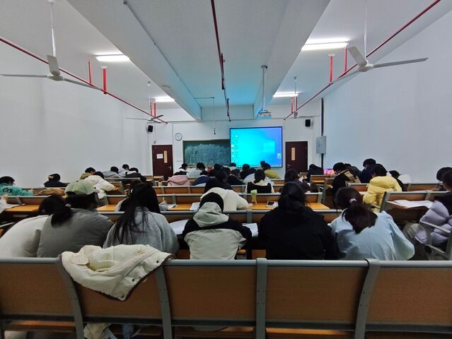 协会各部门分工明确,学习部成员精心搜集整理历年四级考试真题及优质模拟题,充实模拟考试题库;活动部则依据考试要求,高效完成试卷的排版与印刷工作,保证模拟考试顺利开展。11日晚7点,模拟考试在新生晚自习教室准时开始,监考人员严格遵循监考流程,认真维护考场秩序,确保考试公平公正进行。考试过程中,指导老师周文娟对各个考场进行了巡考,了解学生的答题情况。
