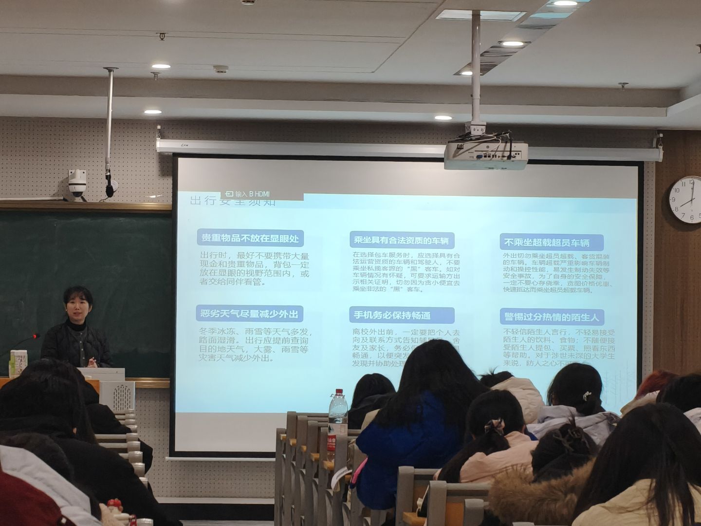 安全是假期离校返乡的重中之重,周文娟建议同学们必须时刻绷紧“安全”这根弦,将政治安全、人身安全、财产安全牢记于心,严守各项安全规定。结合假期学生离校返乡,周文娟还提醒同学们离校时选择正规交通工具,拒乘“黑车”,密切关注天气变化,恶劣天气谨慎出行。同时,周文娟要求同学们务必严格遵守离校流程,向家长报备行程,并确保离校前宿舍断水断电、关窗锁门,排除安全隐患。