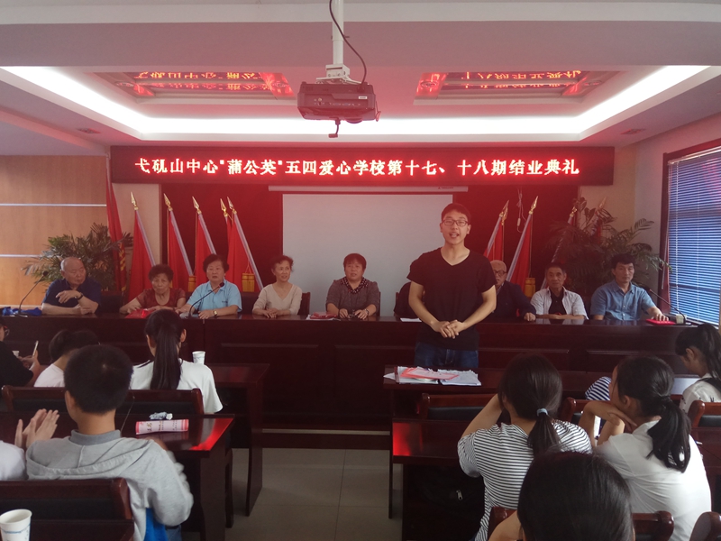 本网讯(生科院 张文光 李绪杰)情系爱心教育,携手筑梦未来。6月6日下午,学院团委志愿者服务队举办的“蒲公英360爱心家教”第18期结业典礼在芜湖弋矶山公共服务中心会议室举行。志愿者服务队指导老师,弋矶山服务中心关工委领导、大学生志愿者、中小学生及其家长和各社区群众代表60余人参加了会议。