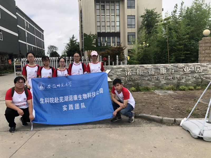 本网讯(生科院 冯卓琳)为提高学生知识与实践能力,帮助生科学生了解就业前景与职业规划,拓宽毕业就业渠道,7月11日,“赴芜湖诺康生物科技公司实践团队”在指导教师卢存龙的带领下,来到芜湖诺康健康产业园开展暑期社会实践活动。