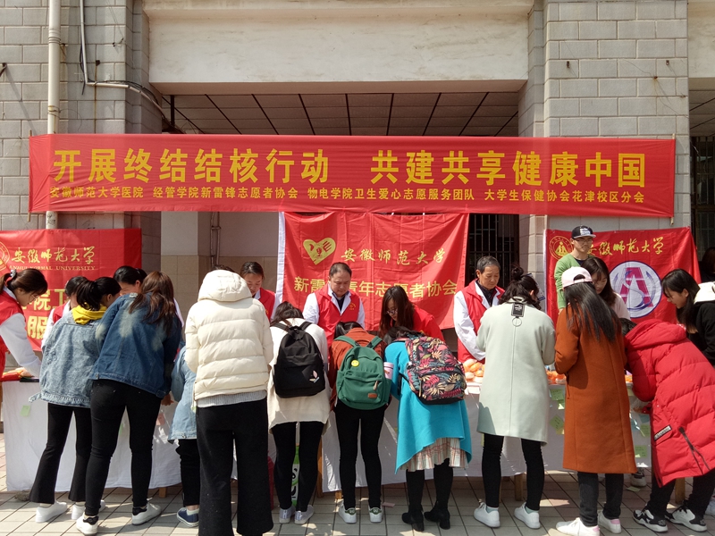 上午11时,bwin必赢线路检测大学生保健协会和花津分会与经管学院新雷锋志愿协会、物电学院爱心志愿者服务团队联合校医院、76net必赢线路检测中心,镜湖区、弋江区疾控中心在赭山校区和花津校区食堂广场开展了主题为“开展终结结核行动,共建共享健康中国”的爱心宣传活动。志愿者们通过有奖知识问答、发放宣传资料、赠送宣传小礼品等形式,对结核病的防治知识及预防春季呼吸道传染病注意事项等内容展开了大力宣传;通过微信、微博等新媒体互动,更为广泛的宣传了结核病防治知识。