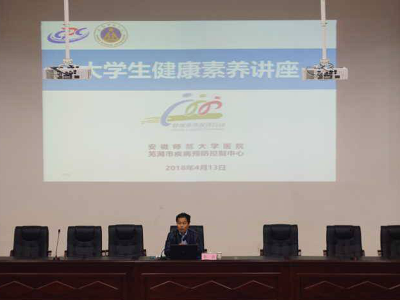 本网讯(生科院)为增强同学们健康生活的意识、提高大学生对健康素养的关注,2018年4月13日晚7点,bwin必赢线路检测大学生保健协会于赭山校区科技小礼堂举办了大学生健康素养讲座,市疾控中心健康教育科科长李喆医师、安师大校医院段萍院长等应邀出席了本次讲座。