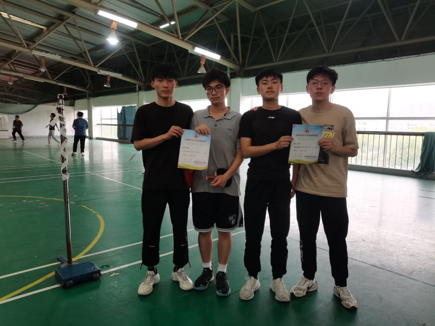 本网讯(陈梓涵 潘诚) 经过两天的激烈角逐,4月18日下午由校体委主办的2021年学生乒乓球竞赛在花津校区南侧体育馆圆满落幕。我院选派的选手经过顽强拼搏,再创佳绩,其中杨永杰、胡皓双人组获得男子双人组第二名,崔德松、蒋振宇双人组获得男子双人组第四名。
