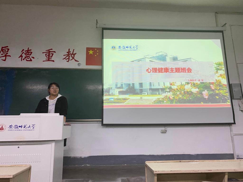 本网讯(梅佳怡)2021年5月16日晚,2018级生物技术一班在教学楼1402教室开展了心理健康主题班会的活动。本次班会由心理健康安全委员李舒婷主持。