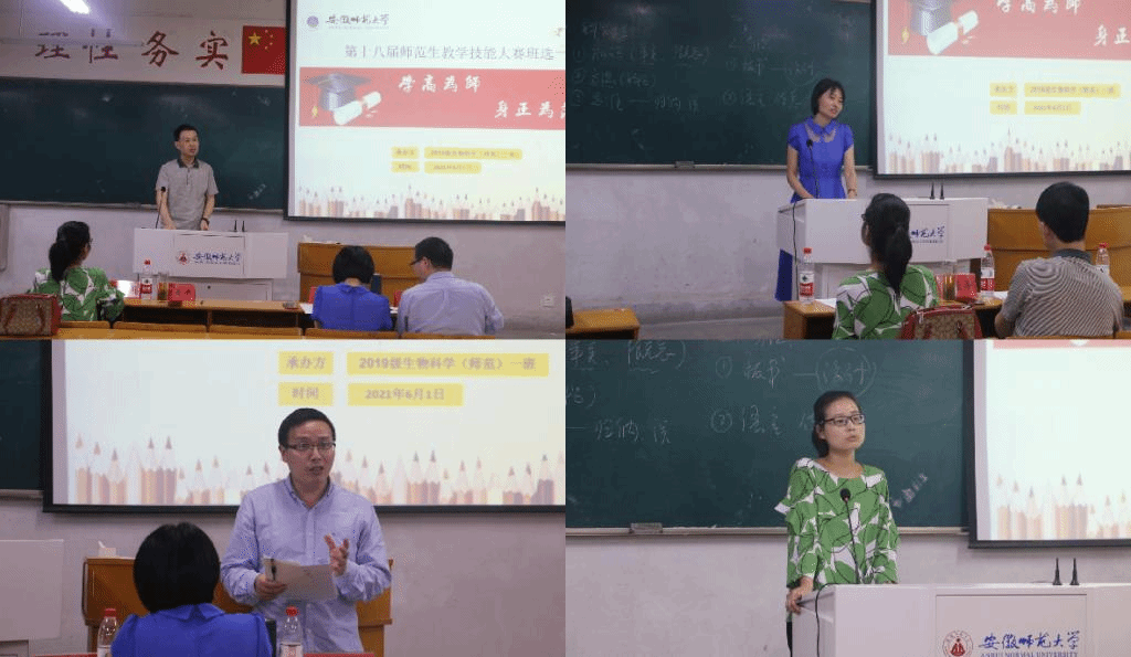 本网讯(黄琳怡 胡玮) 扬技能之帆,启梦想之旅。为进一步夯实师范生从师技能,提高学生创新实践能力,选拔优秀的学生参加院级师范生技能大赛。2021年6月1日晚上,2019级生物科学一班于田楼8201、8204教室举办师范生教学技能大赛班选,由鲁亚平、王宝娟、谭小娟、刘再群等4位老师担任比赛评委,班长周威、学习委员李慧林主持比赛,该班14位学生参赛。