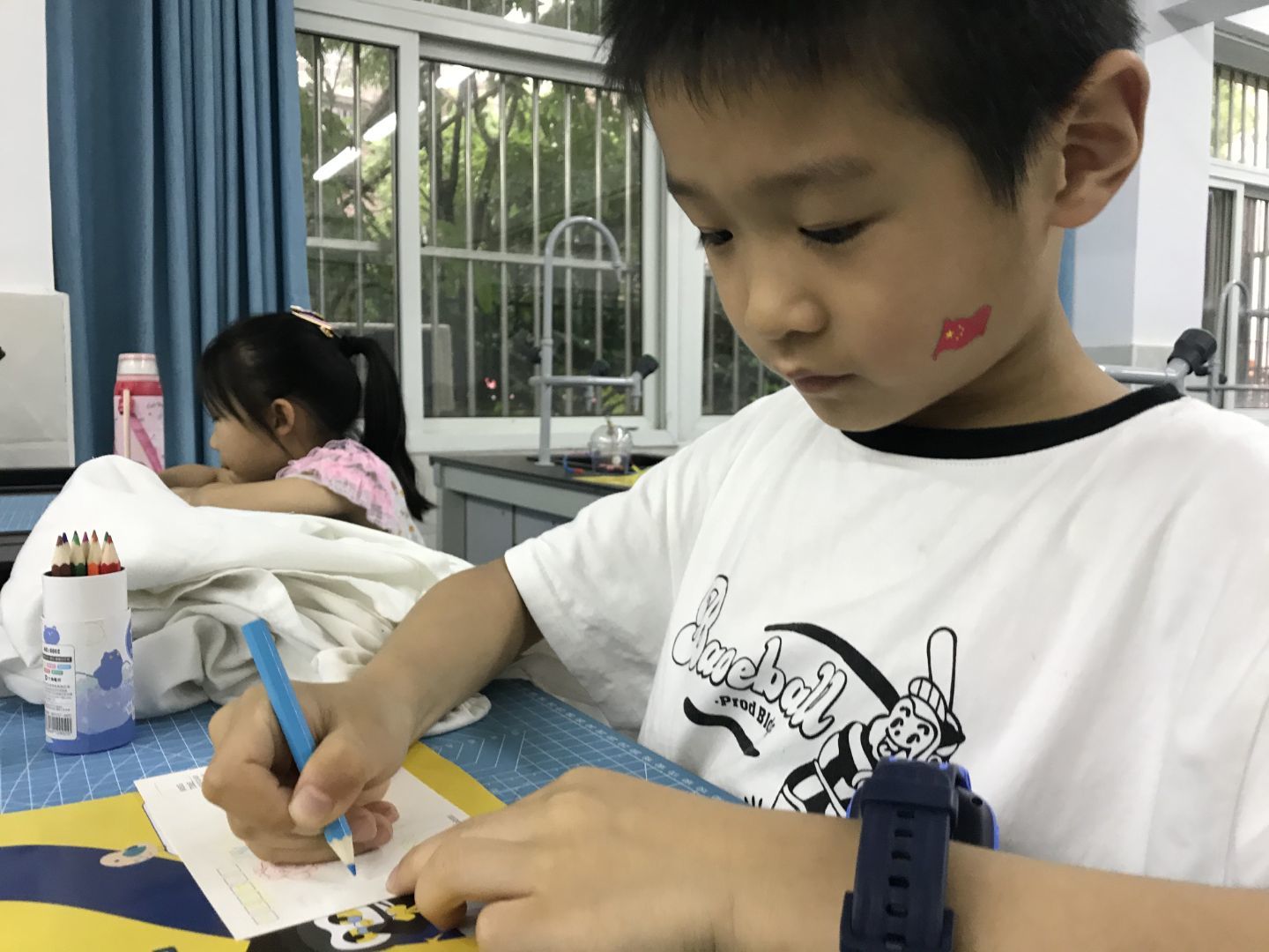 故事结束,在老师们的带领下,同学们兴致盎然地开始制作关于党的明信片,我们将把这些明信片献给老党员同志们,完成红色精神的传递。一张张精美的明信片展示了同学们的创意与爱党爱国精神。有的同学绘画了在国旗下敬礼的学生,也有的同学绘画了党徽党旗等。同学们都在用自己的方式认真传达着对于党的认识和热爱。