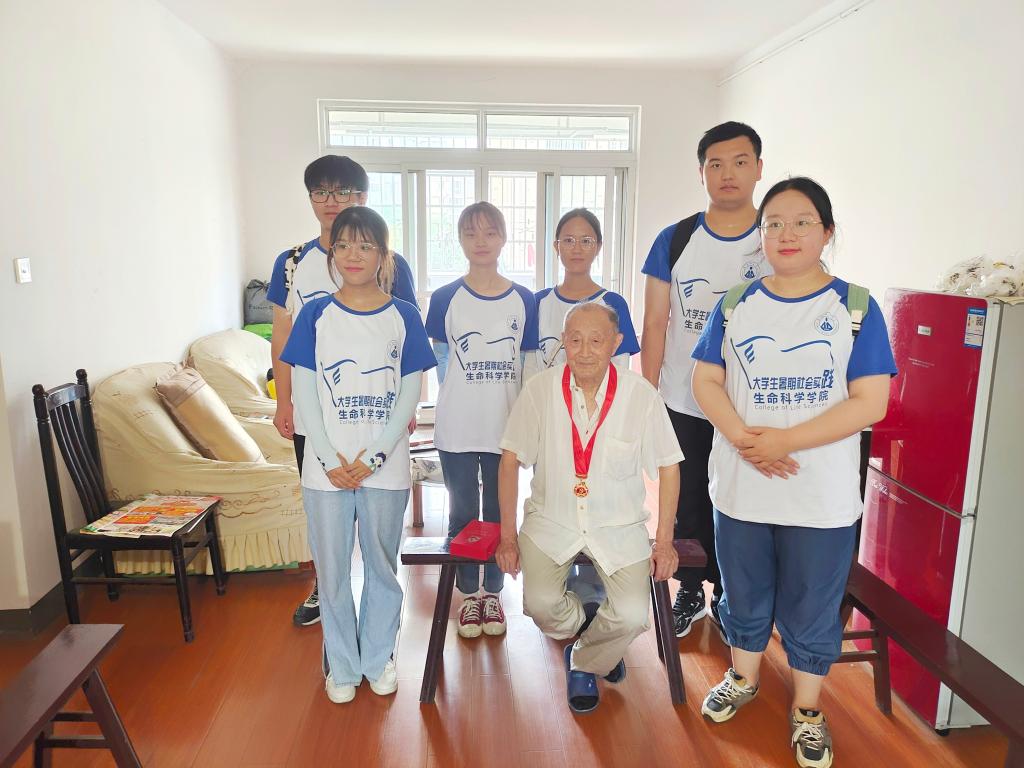 7月18日上午,在工作人员的带领下,团队成员首先来到了徐志明爷爷的家。一进门,徐志明爷爷便热情地招呼大家坐下,大家很快便熟悉起来,顺利地进行了采访。徐志明爷爷于1958年加入中国共产党,为什么加入中国共产党呢?“因为中国共产党是最伟大的、中国共产党是最正确的、是带领中国人民走向繁荣的,所以我坚定地选择了中国共产党。”徐志明爷爷激动地说道。爷爷还动情地讲述了入党以后印象深刻的经历,并感叹了建党一百年来自己生活发生的变化。“我入党几十年,印象深刻的事情有很多。我经历了文化大革命,但是我相信中国共产党最终一定是正确的。回顾过去,我的生活确实发生了很大变化。我们经历了土地改革,改革开放。以前我们没有土地的,牛也养不起的。然后我们老百姓就有了一个梦想,要开拖拉机……”“过上好日子,耕地不用牛,点灯不用油”,爷爷还骄傲地展示了自己入党50年的纪念章。在采访的最后,爷爷表达了自己对中国共产党的感谢和对祖国的美好祝愿。“我们的国家从站起来到富起来再到强起来,我们要永远记得中国梦。你们这些青年要争取、要刻苦、要努力克服一切困难。”