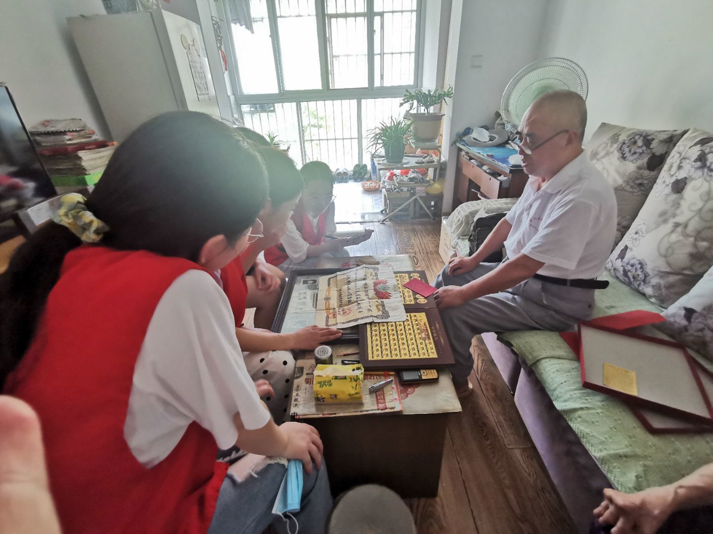 最后一组同学来到了焦利音爷爷家,焦爷爷党龄五十余年,曾在滁州电业局工作,他认为电力发展在国家建设中有着举足轻重的作用,参与编写《滁州电力志》。焦爷爷毕业于合肥工业大学,大学时期曾担任班长,因生活艰苦,常饿着肚子上晚自习。大学期间,焦爷爷曾与陈独秀的孙子同窗,对《新青年》杂志的创设尤为赞叹。焦爷爷表示,国家的发展是通过好几代人不断艰苦奋斗发展起来的。焦爷爷也十分感谢党对他的培育以及如今对他生活上的支持。