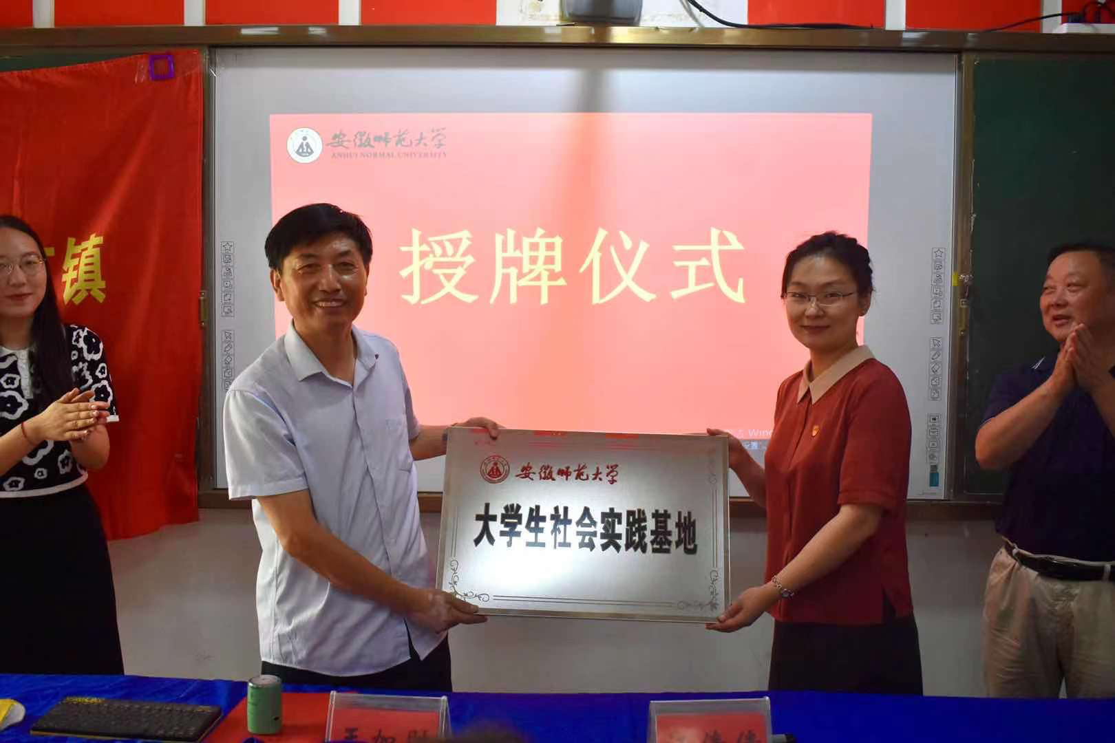本网讯生科院 朱琪)7月21日上午,bwin必赢线路检测“大学生社会实践基地”授牌仪式在濮集留守儿童活动站举行,76net必赢线路检测中心党委副书记汪倩倩、暑期社会实践团队指导老师沈亮、学院团委书记胡玮、乌江镇委副书记和副镇长出席了授牌仪式。