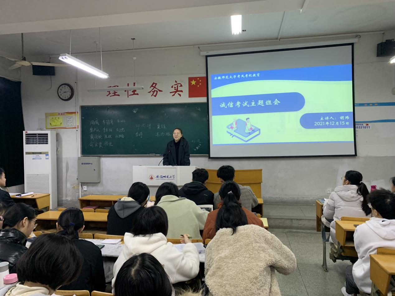 班会伊始,胡玮结合学院期末考试时间安排,提醒同学们认真复习,积极迎考,诚信参考,并着重强调违规作弊行为的惩处力度和诚信考试的重要性。随后,胡玮对同学们提出两点要求,一要端正学习与考试的态度,严格遵守考场规章制度;二要杜绝一切作弊形式,坚决维护公平公正的考试环境,发挥个人真实水平,倡导诚信之风。