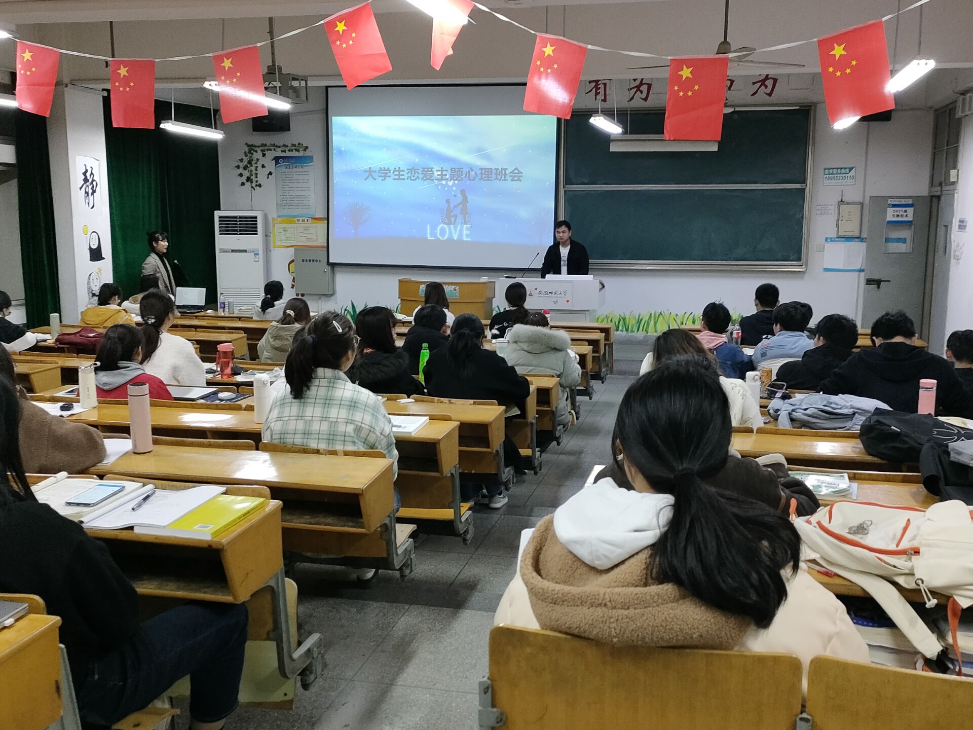 认识爱,学会去爱。3月30日晚,卓越教师班在田楼8308教室开展大学生恋爱心理班会,此次班会由心理委员江赟主持,辅导员周文娟,生物科学(师范)二班心理委员李紫妍,和卓越教师班班级全体同学参加。班会伊始,江赟向同学们阐述了爱情的定义,列举身边的例子,班会氛围轻松愉悦。紧接着,江赟从大学生恋爱心理特征,谈恋爱的得与失,如何正确面对失恋三个方面与同学们探讨了大学生恋爱的问题。最后,周文娟以自身经历劝导同学们,学生要以学习为主,要正确处理好学习、生活与恋爱之间的关系,并希望同学们要珍惜学习时间,努力掌握知识本领,做到不负韶华梦,读书正当时。
