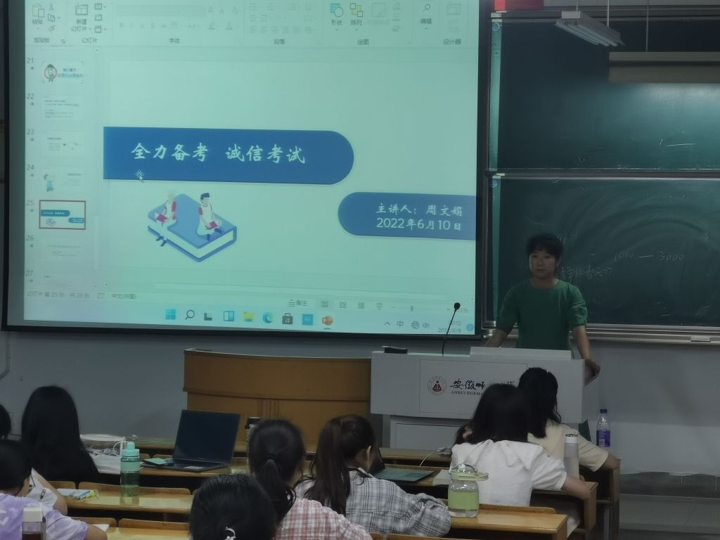 为了营造诚信公平的考风氛围,21级生物科学3班于6月10晚在田楼8306召开以“诚信考试”为主题的班会,会议由周文娟主持。